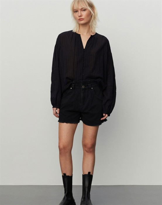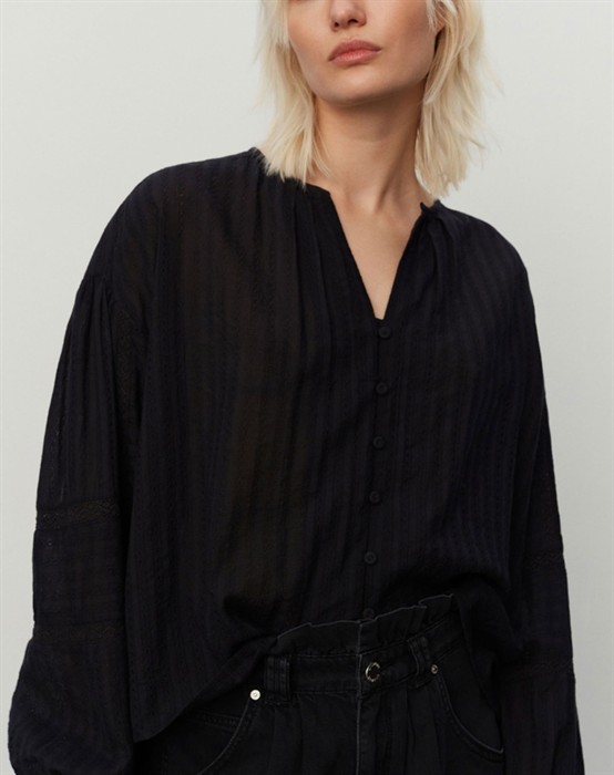 2nd Poem Skjorte - 2nddaySkøn sort skjorte med et kort snit. Fine blondedetaljer.Lange ballonærmer.Gennemknappet.