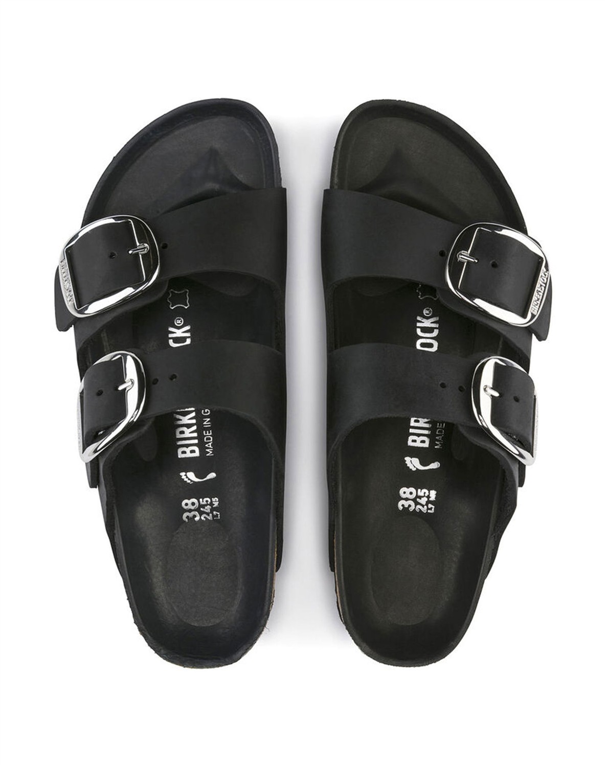 Arizona Big Buckle Oiled Leather Sandal - Black - BirkenstockArizona Big Buckle sandal i sort.To remme henover foden. Justerbar spænde.Olieret nubuck læder.Smal model.
