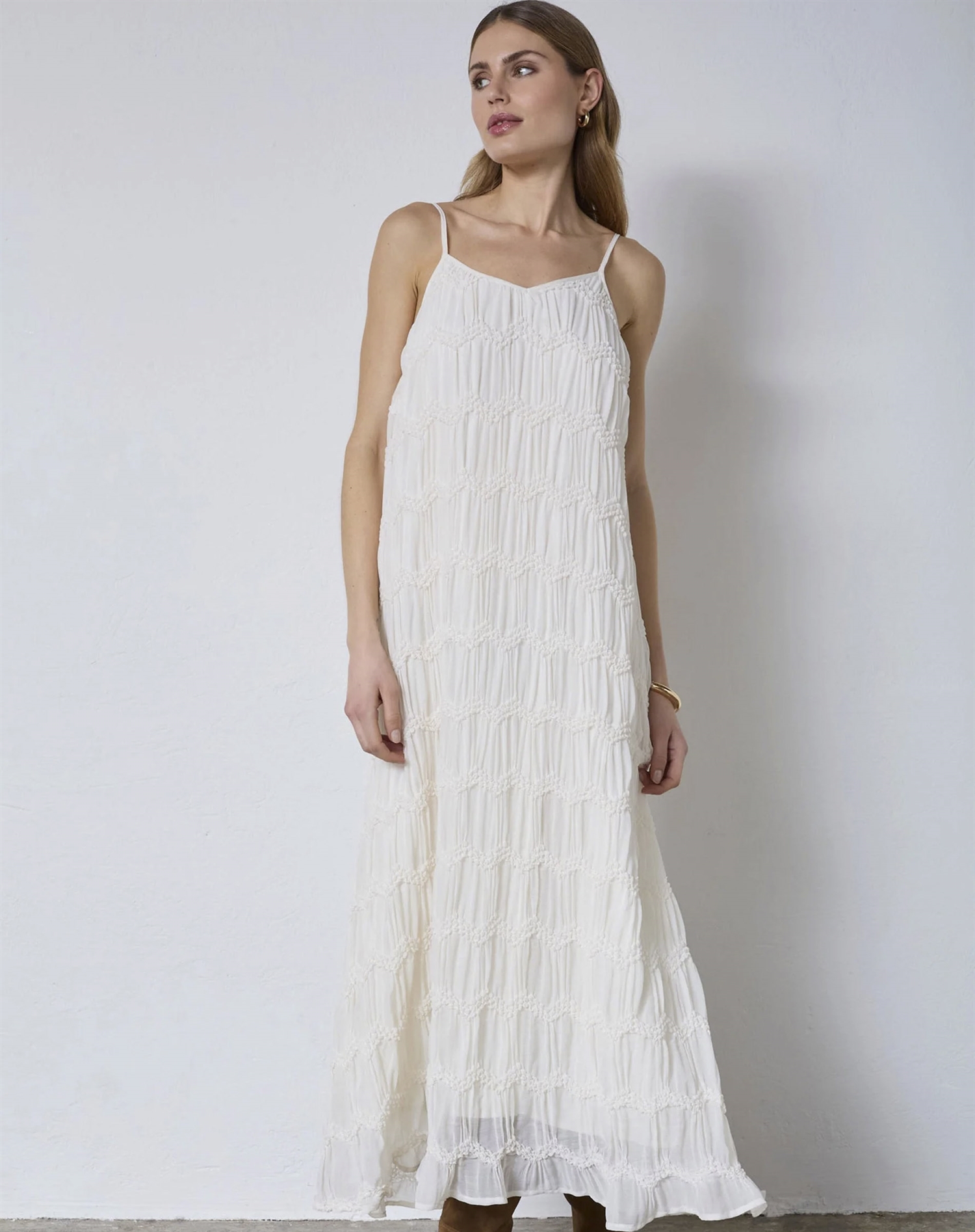 Til dagen er den nem at style med sandaler og en solhat for et afslappet, men stadig velklædt outfit. Skal du ud om aftenen, så skift til høje hæle og tilføj smykker, der fremhæver det fine snit. Materialet falder flot og gør den oplagt til både almindelige dage og festlige planer.