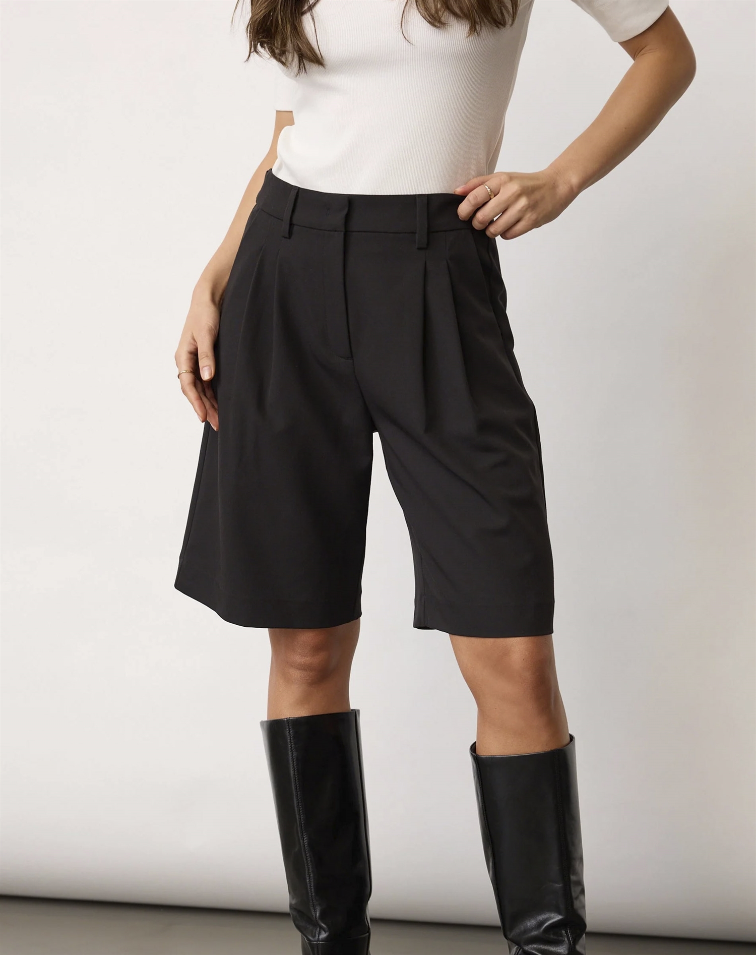 Bermuda-længden giver god komfort og dækning, og pasformen gør dem behagelige hele dagen. Et sikkert valg til både hverdage, arbejde og aftaler i byen.