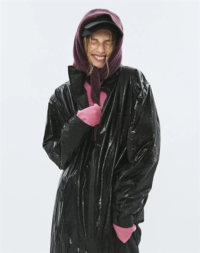• Regnjakken kan pakkes sammen i en pose.