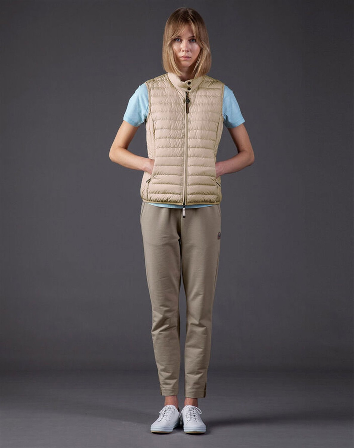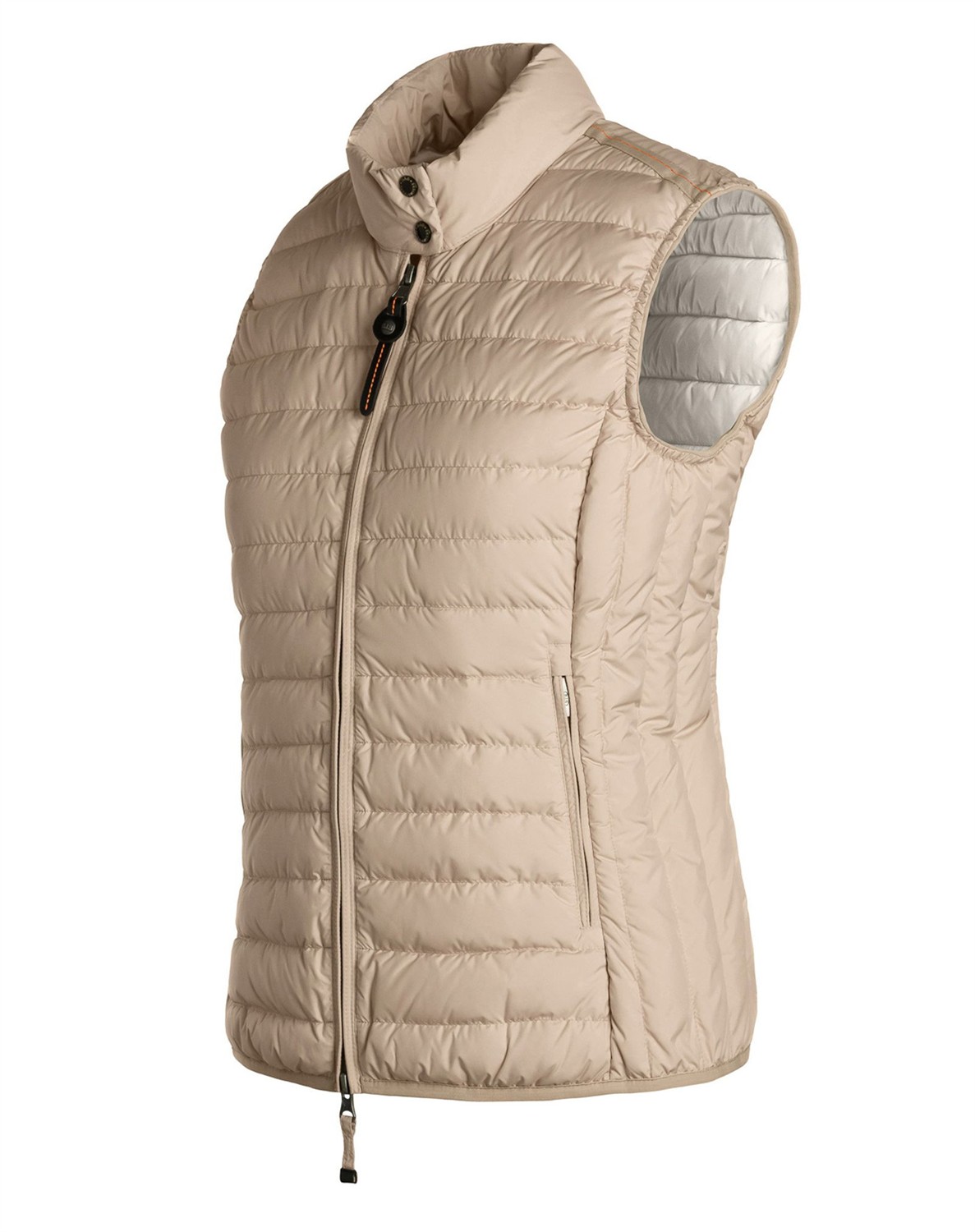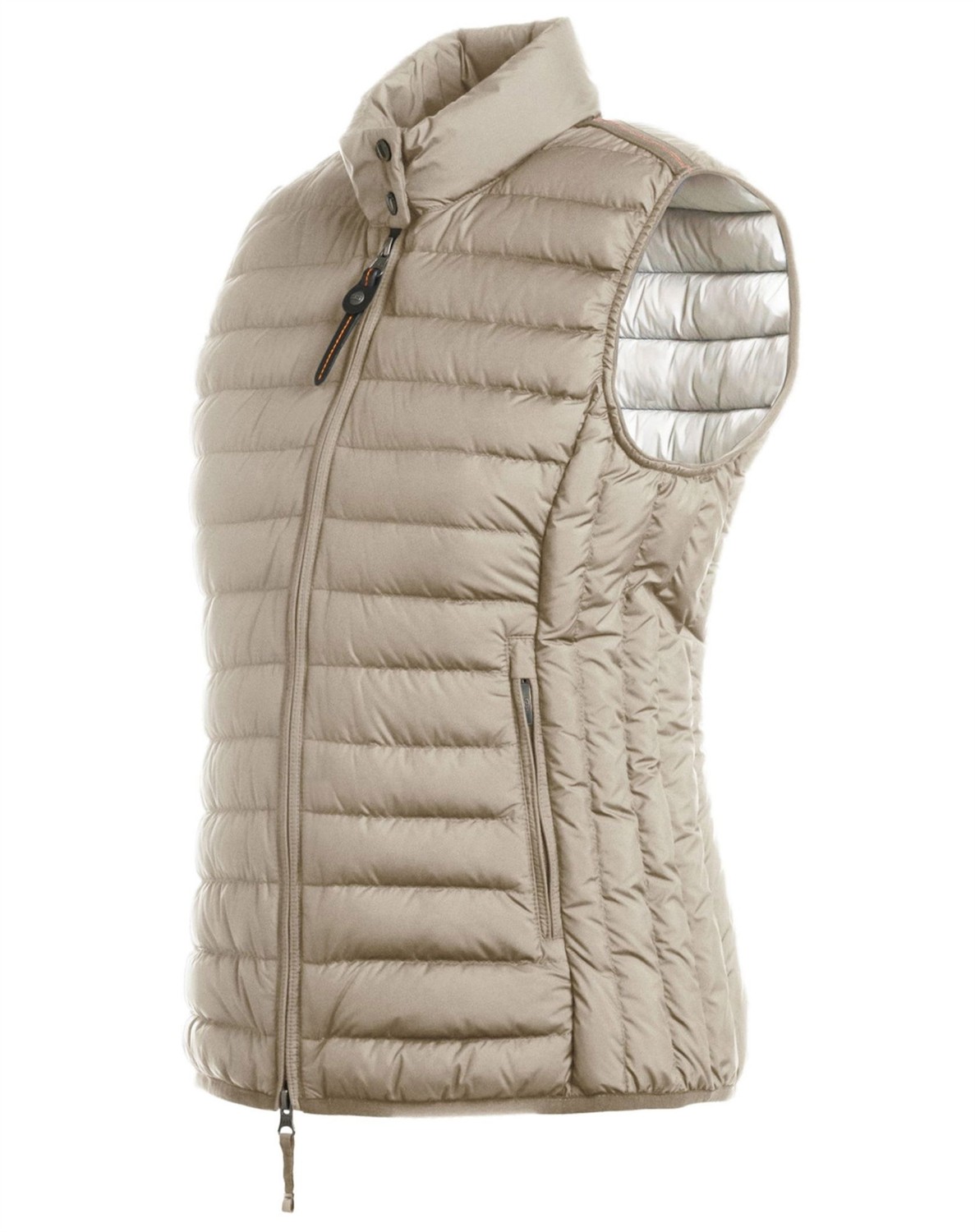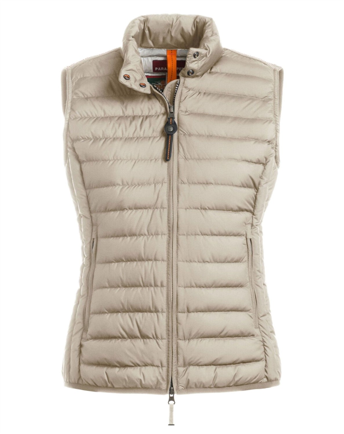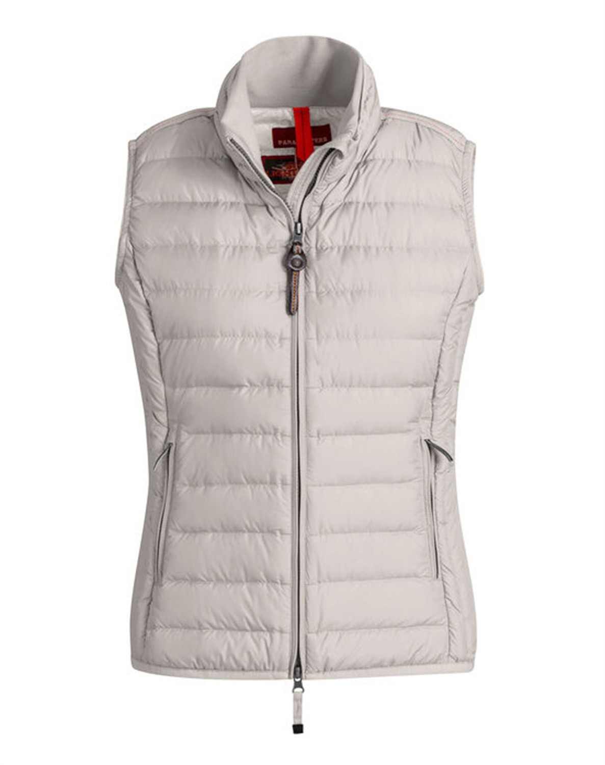 Dodie Womens Vest fra Parajumpers Skøn vest med let dunfyld fra Parajumpers. Vesten har en høj dobbelt krave med rib på indersiden, to lynlåslommer i siden samt en figursyet pasform, som giver vesten et feminint look. Dodie Womens Vest har en temperatur rank på 1, og er ideel at bruge til et mildere klima. Svinger du mellem to størrelser skal du vælge den største.  Oplev alle jakkerne fra Parajumpers her.
