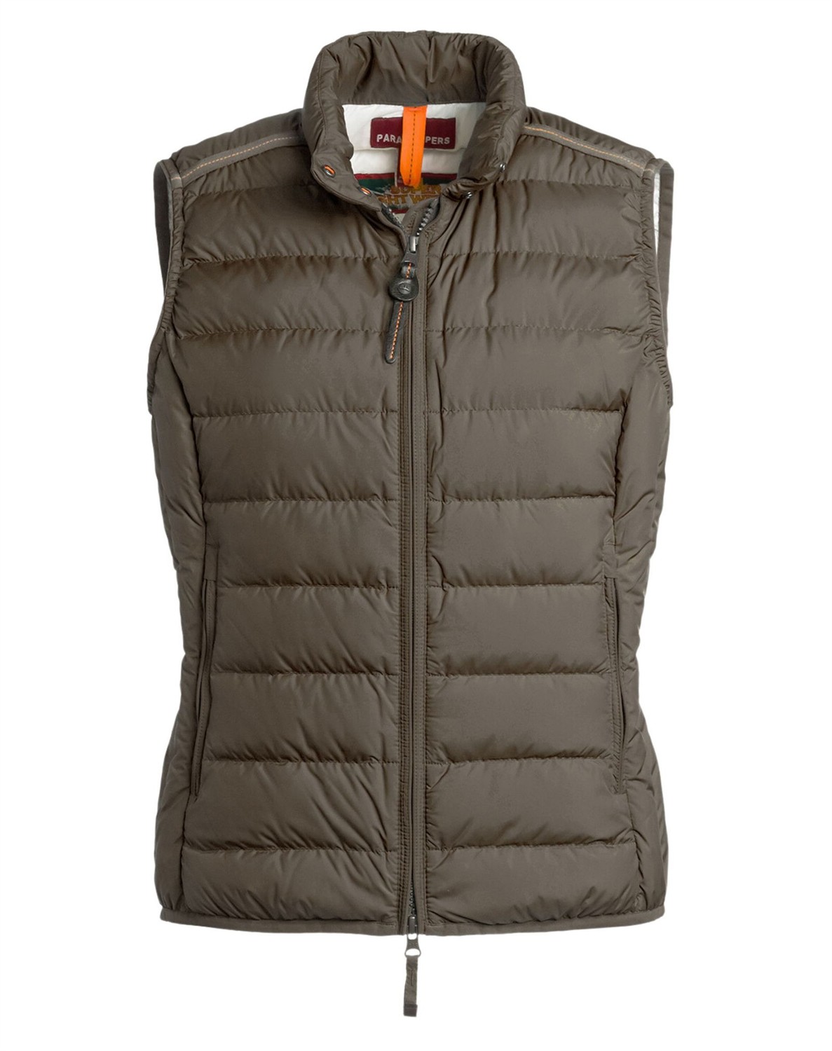 Dodie Womens Vest fra Parajumpers Skøn vest med let dunfyld fra Parajumpers. Vesten har en høj dobbelt krave med rib på indersiden, to lynlåslommer i siden samt en figursyet pasform, som giver vesten et feminint look. Dodie Womens Vest har en temperatur rank på 1, og er ideel at bruge til et mildere klima. Svinger du mellem to størrelser skal du vælge den største.  Oplev alle jakkerne fra Parajumpers her.