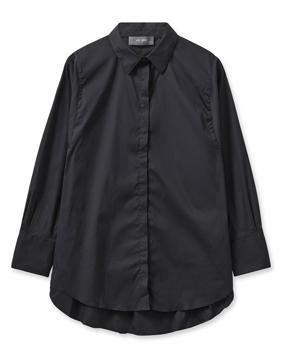 Enola Skjorte - Mos MoshSkøn skjorte med fine detaljer fra Mos MoshOversized pasform i skøn kvalitetGennem knappet med skjult knappelukningKlassisk krave samt fine detaljer på ryggenEnola skjorte blusen fra Mos Mosh pige er en populær del af brandets basis program. Ønsker du en skjorte, der altid er klædelig til både hverdag, reception, cafebesøg og meget andet, så er Enola skjorten lige noget for dig. Den har et lækkert og spændende snit med sit mere boxede design, der tilfører skjorten både volumen og længde. De skjulte knappelukninger gør ligeledes skjorteblusen mere elegant at se på. Er du én af dem, der elsker mere længde bagtil i dine skjorter, så er denne smarte skjorte også lige noget for dig. Enola skjorten findes i stilrene basis farver og kan styles til både smalle og brede pæne bukser, men er også super cool til jeans eller skind i alle pasform varianter.