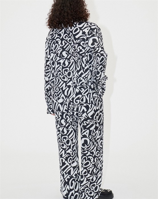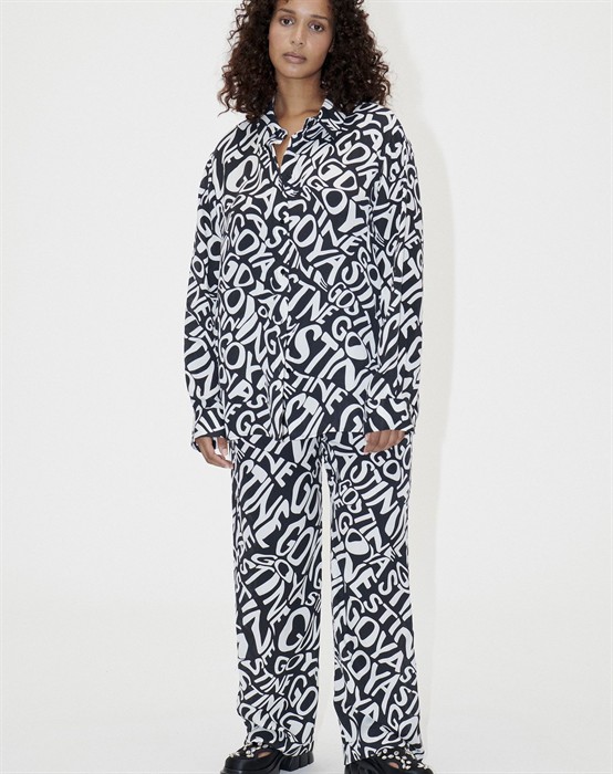 Fatou Bukser - Liquified Logo - Stine GoyaLækre bukser med cool logo-print. Elastik i taljen.Lige ben.Lommer i siderne.Afslappet pasform.Vi anbefaler, at du vælger din normale størrelse.Style de lækre Fatou bukser med den matchende Wal skjorte, og få et ægte Goya-look. Den kan også styles med en enkel top eller lækker strik.