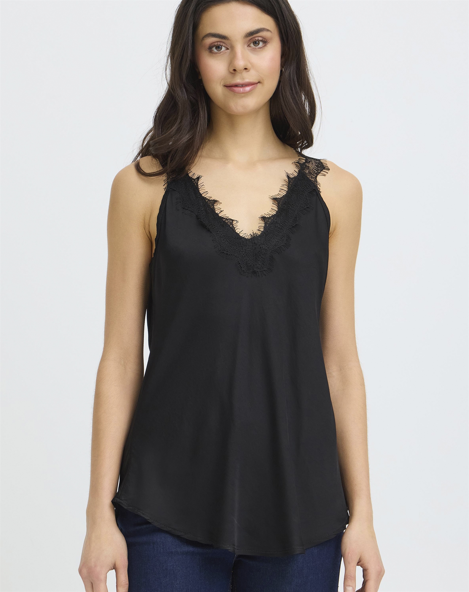 Fransa - FRCeleste 1 Top er nem at holde af, fordi den både er klassisk og fleksibel. Snittet gør den let at få ind i garderoben, og Meteorite-farven giver et sofistikeret twist, uden at det bliver for meget. Det er den slags top, der føles rigtig uanset anledning - og som du kan tage frem igen og igen.