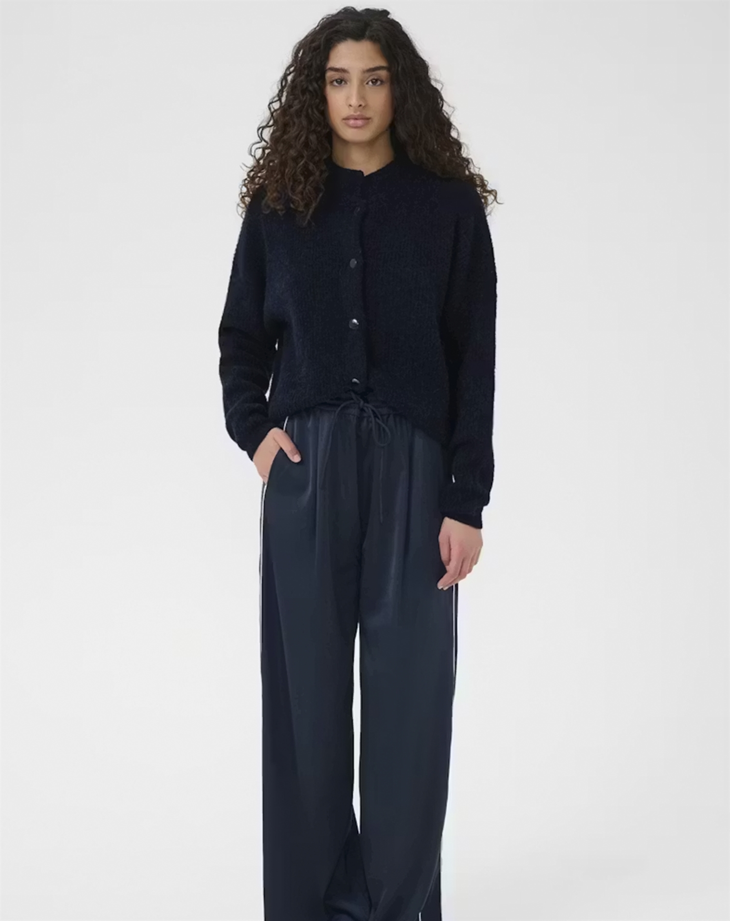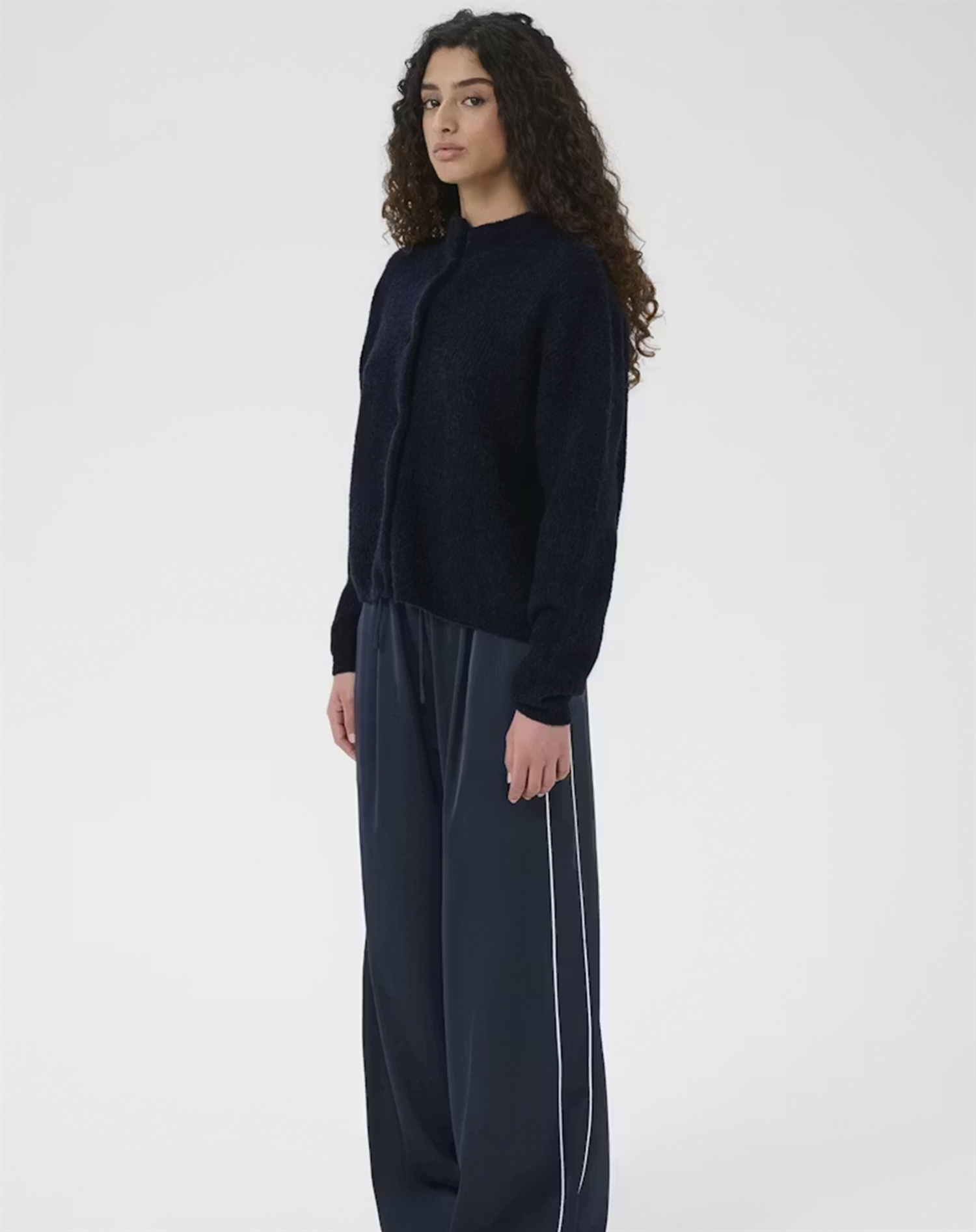 Til arbejde kan du sætte AlphaGZ Short Cardigan sammen med en sprød hvid skjorte og et par pæne, skræddersyede bukser for et skarpt udtryk. I weekenden kan du gå en mere afslappet vej og style den med en blomstret kjole og ankelstøvler til en chic brunch. Den kan bruges på mange måder, og netop den fleksibilitet gør den hurtigt til en favorit.