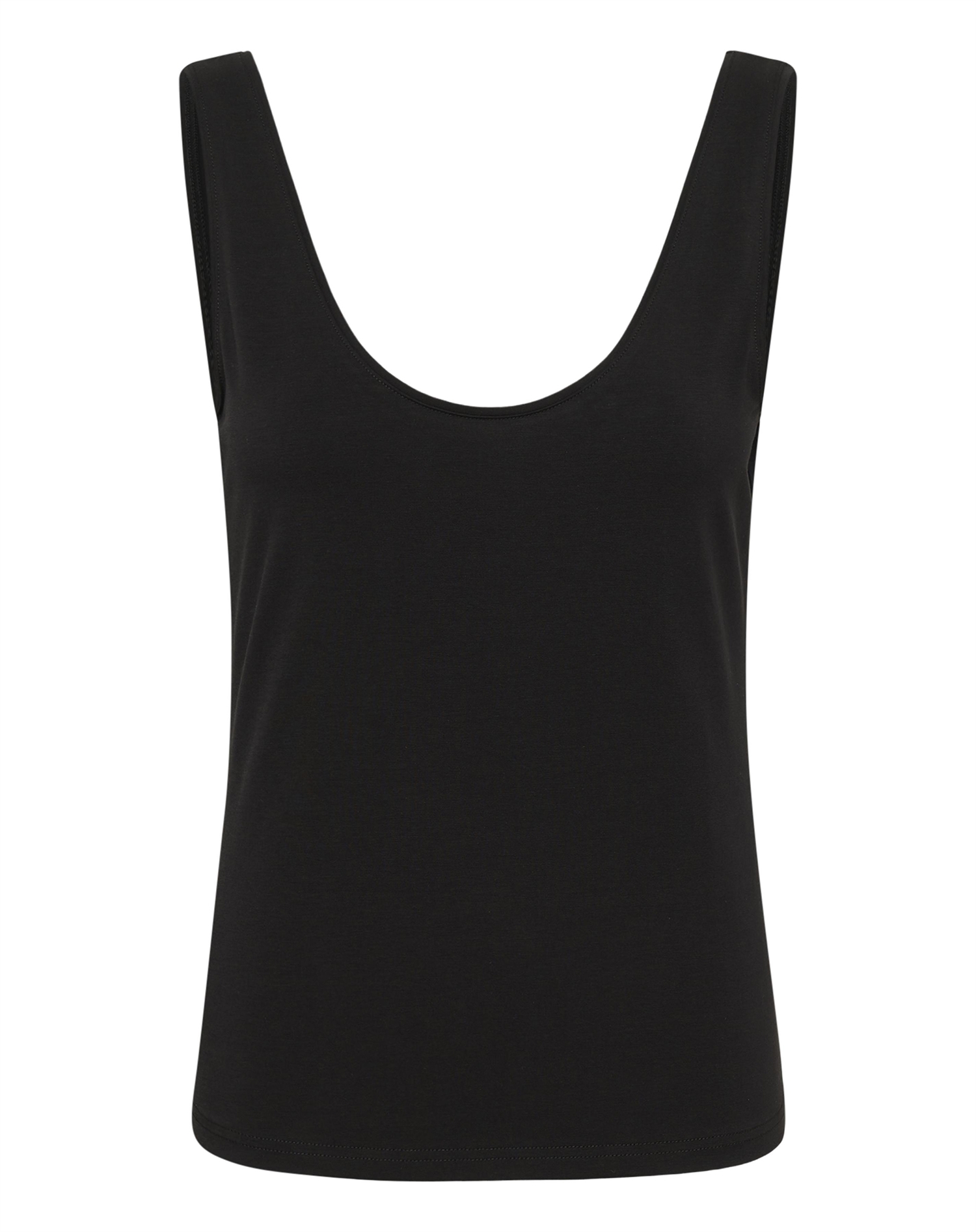 En sort tank top som denne er et must, fordi den kan bruges på utallige måder. Brug den som fundament i lag-på-lag, hvor en let jakke eller cardigan giver et casual præg, eller style den med et skarpt, skræddersyet jakkesæt for et mere sofistikeret resultat. Med et par smykker er du hurtigt klar til alt fra arbejdsdagen til en middag ude.
