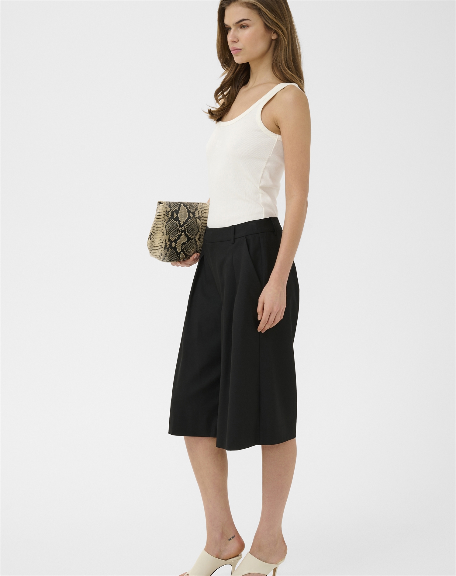 Til varme dage i byen kan du sætte dem sammen med en let T-shirt og sneakers for et cool, casual look. Skal det være mere elegant, fungerer de også perfekt med en skjorte og stilletter til en aften ude. De vide ben giver god bevægelsesfrihed, og den sorte nuance gør det enkelt at matche dem med stort set alt i garderoben.