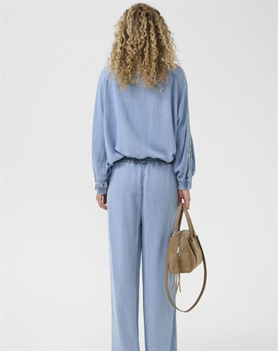 Style den med denim jeans i samme tone for et sammenhængende look, eller vælg sorte bukser, hvis du vil have en tydeligere kontrast. Et par sneakers giver et sporty twist, mens ankelstøvler løfter outfittet og gør det mere city-chic.