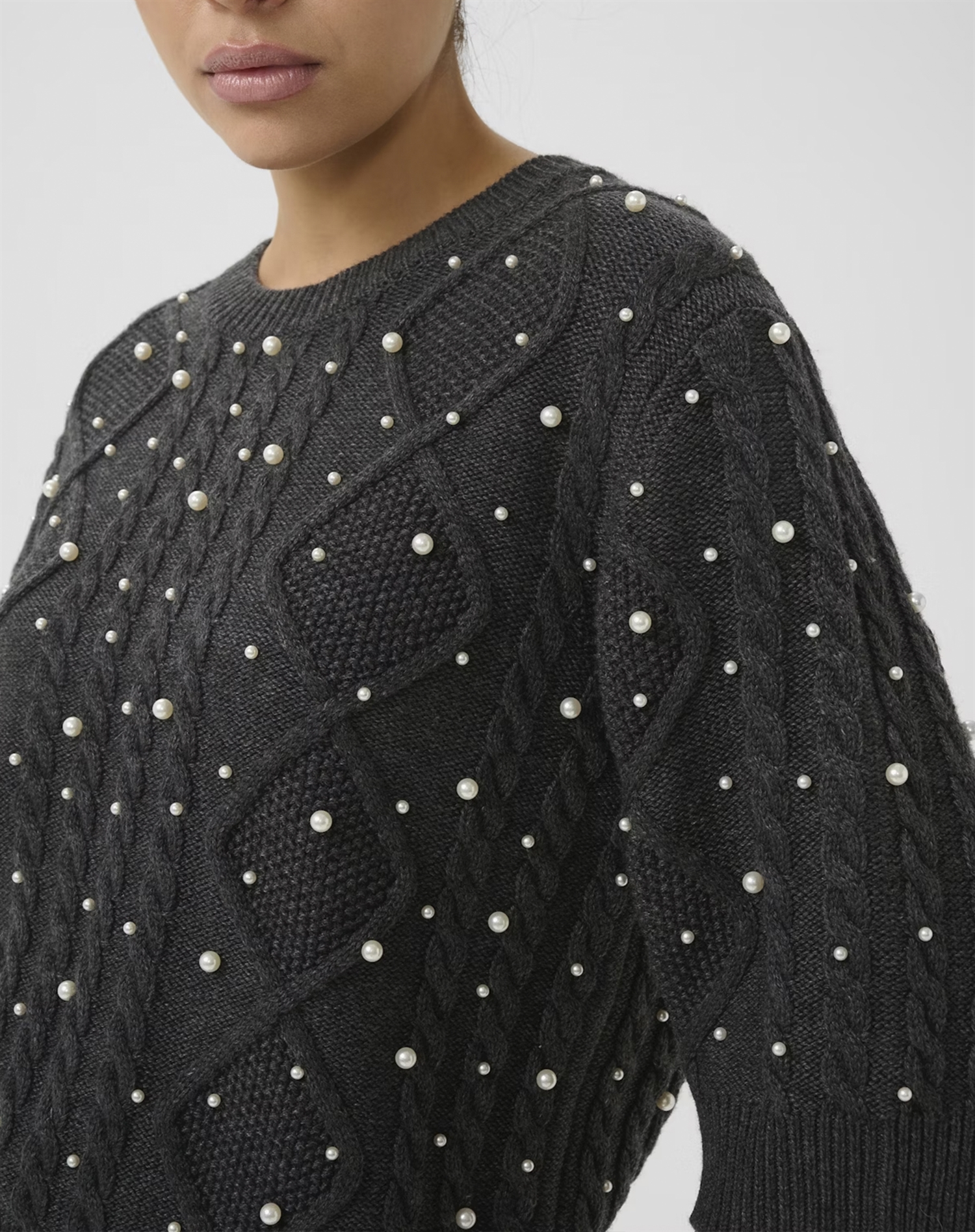 Gestuz - GZTaiba Deco Pullover - Dark Grey Melange