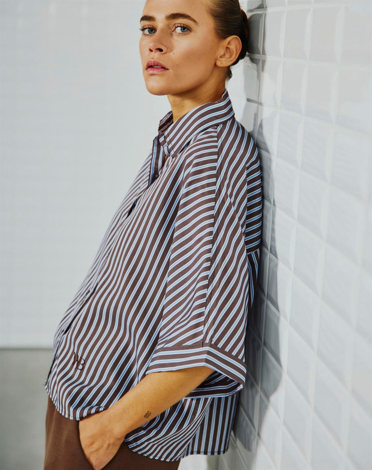 Withblack - Helene WBL Batsleeve Skjorte - Brown Stripe