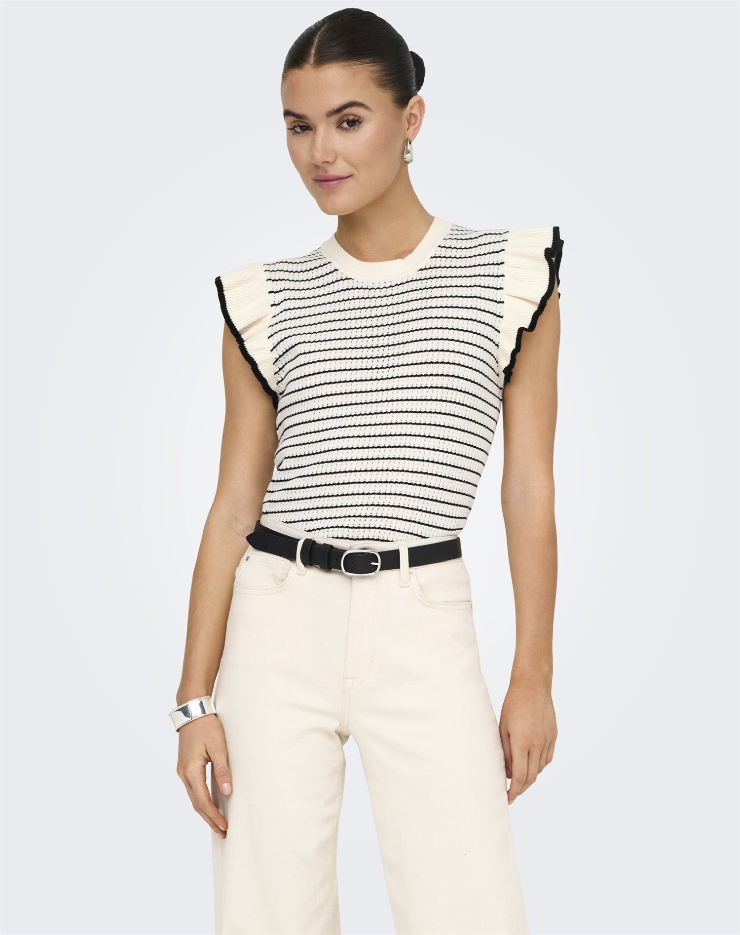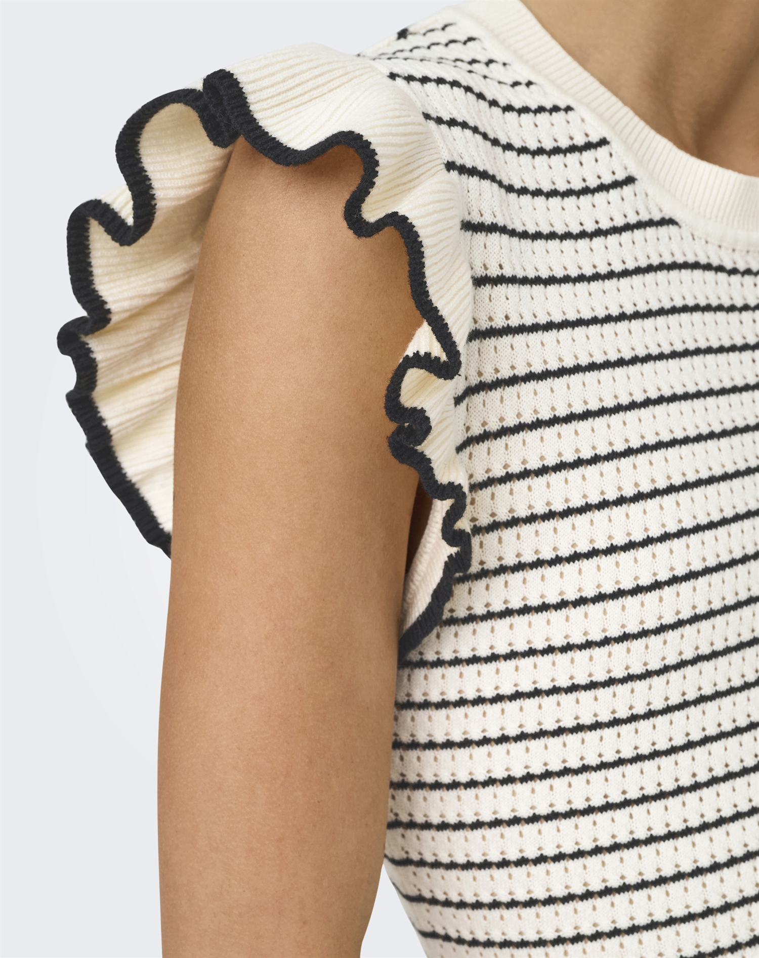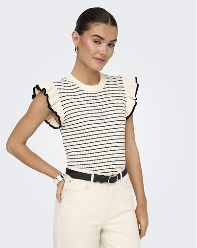 JDY - JDYCarice Frill Pullover Top - Cloud Dancer/Black