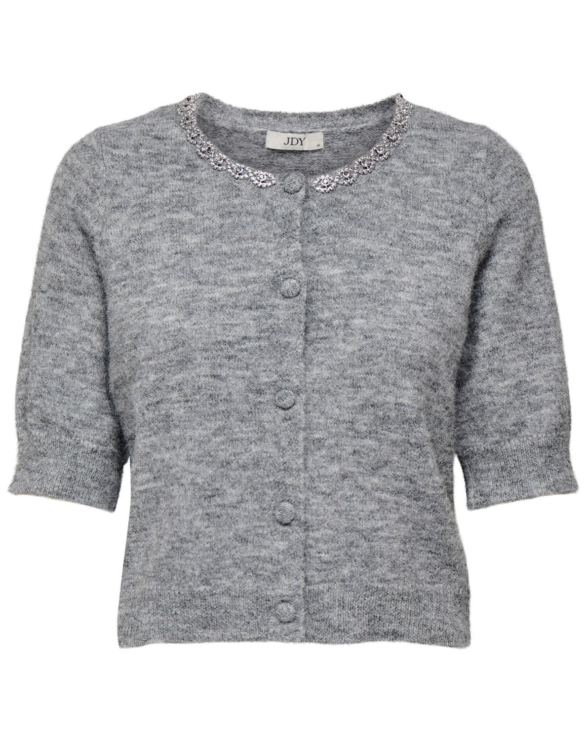 JDY - JDYAlva Life 2/4 Embellish Cardigan • Elegante sølvdetaljer. • Perfekt for en aften ude. • Behagelig pasform. • Trendy kort ærme design. • Let at style med dine yndlingsjeans eller en pæn kjole.JDYAlva Life cardiganen er ideel til både hverdagsbrug og særlige lejligheder. Det lette stof føles skønt mod huden, og de glitrende detaljer tilføjer en charmerende finish.