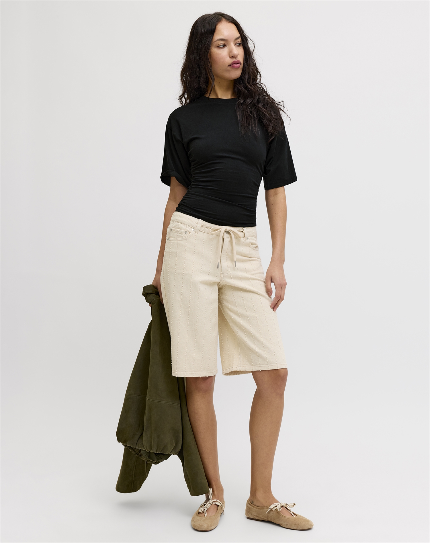 Hvad gør den værd at have i skabet? Sort er altid en sikker farve, der fungerer til alt og aldrig mister sin relevans. Samtidig er den ofte nem at holde pæn, fordi farven typisk står flot over tid. Pasformen er behagelig og lige til, hvilket gør den ideel til dage, hvor komfort og stil skal gå hånd i hånd. Og netop fordi den både kan være en neutral base og et mere markant element, afhænger det hele af, hvordan du vælger at sætte den sammen.