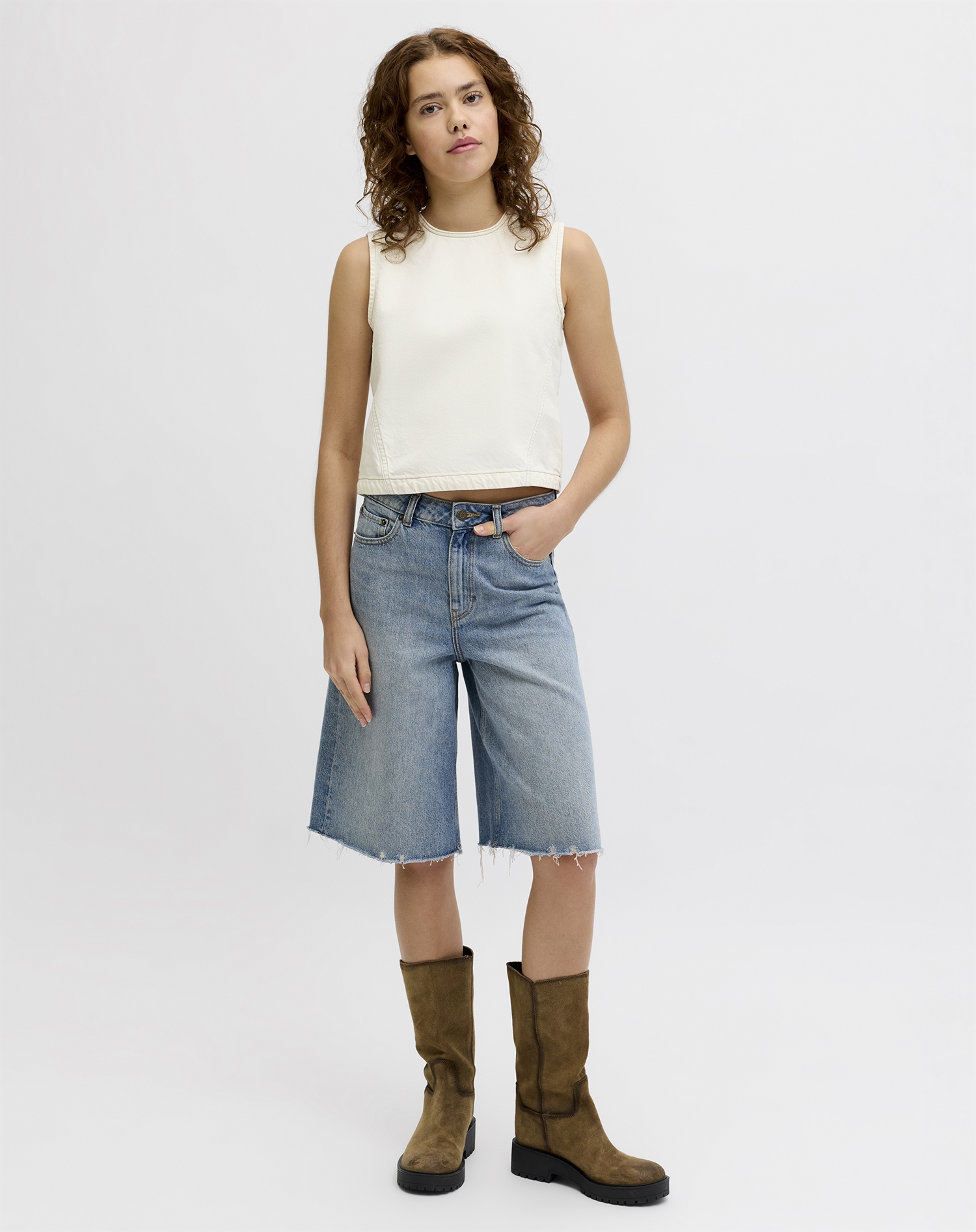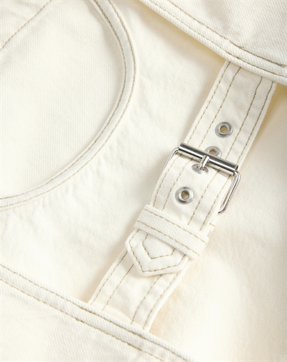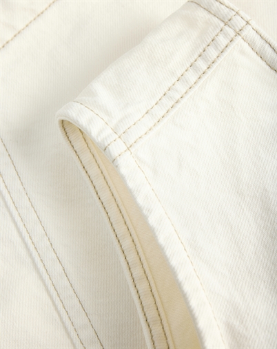 Det, der gør toppen ekstra anvendelig, er dens evne til at passe ind i mange stilarter. Snittet er klassisk og let at kombinere, uanset om du går efter et casual udtryk eller noget mere pænt. Off-white denim rammer balancen mellem moderne og klassisk, så du får en favorit, der kan bruges sæson efter sæson.