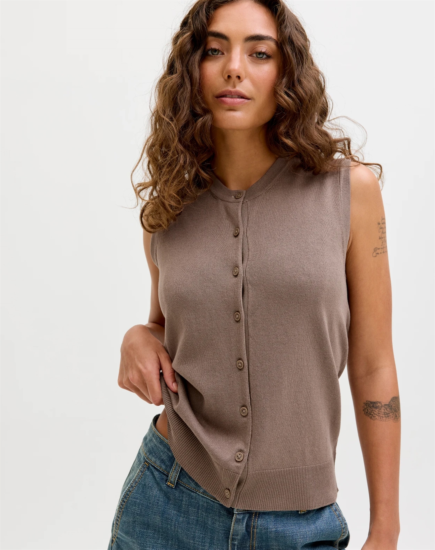 Hvorfor vil du elske denne cardigan vest? Den er designet med komfort i fokus, hvilket gør den ideel til både afslappede og mere formelle anledninger. Dens brune lentil-farve er både moderne og klassisk, hvilket gør den let at integrere i din nuværende garderobe. Den er også nem at style, så du hurtigt kan skabe et look, der afspejler din personlighed. Det er en investering i både komfort og stil, som du vil sætte pris på sæson efter sæson.