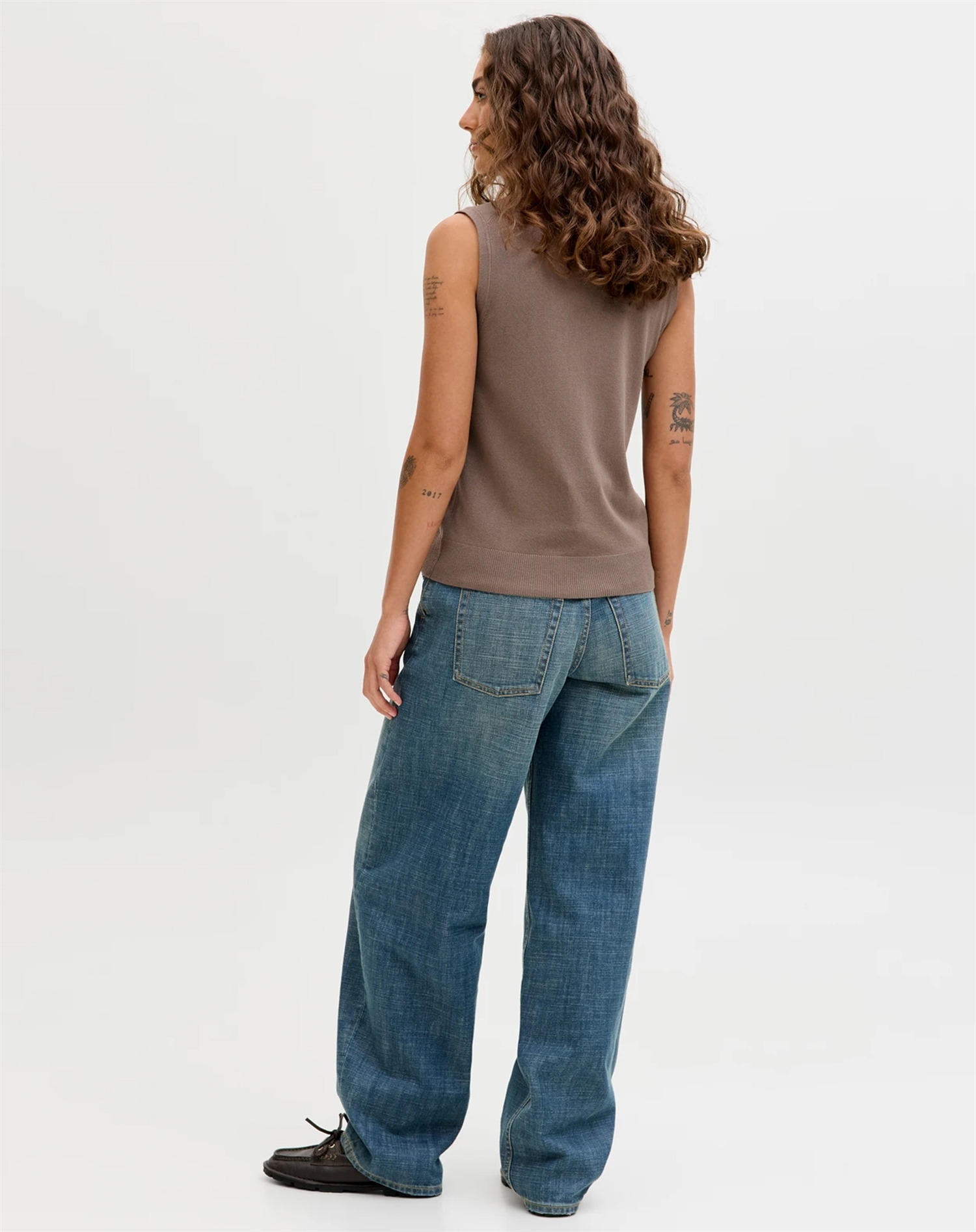 Prøv at kombinere vesten med en let bluse eller en simpel t-shirt for et afslappet hverdagslook. For en mere sofistikeret stil kan du tilføje elegante bukser og ankelstøvler. Dens alsidige farve gør den nem at matche med både lyse og mørke toner, så du kan eksperimentere med kontraster og skabe din egen unikke stil.
