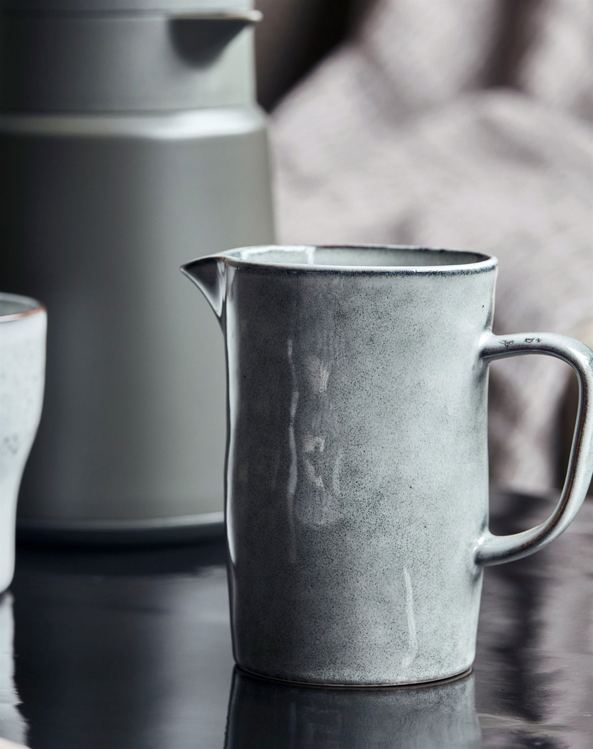 Den populære serie, Rustic, fra danske House Doctor i den fineste blågrå glasur har fået nye fine kander. Rustic-serien består af alt fra tallerkener, skåle, krus og kander i stentøj. Dæk et smukt bord med denne kande og fuldend borddækning med resten af stellet fra den smukke Rustic-serie. Benyt kanden til kaffen i pausen eller brug den til sauce.
