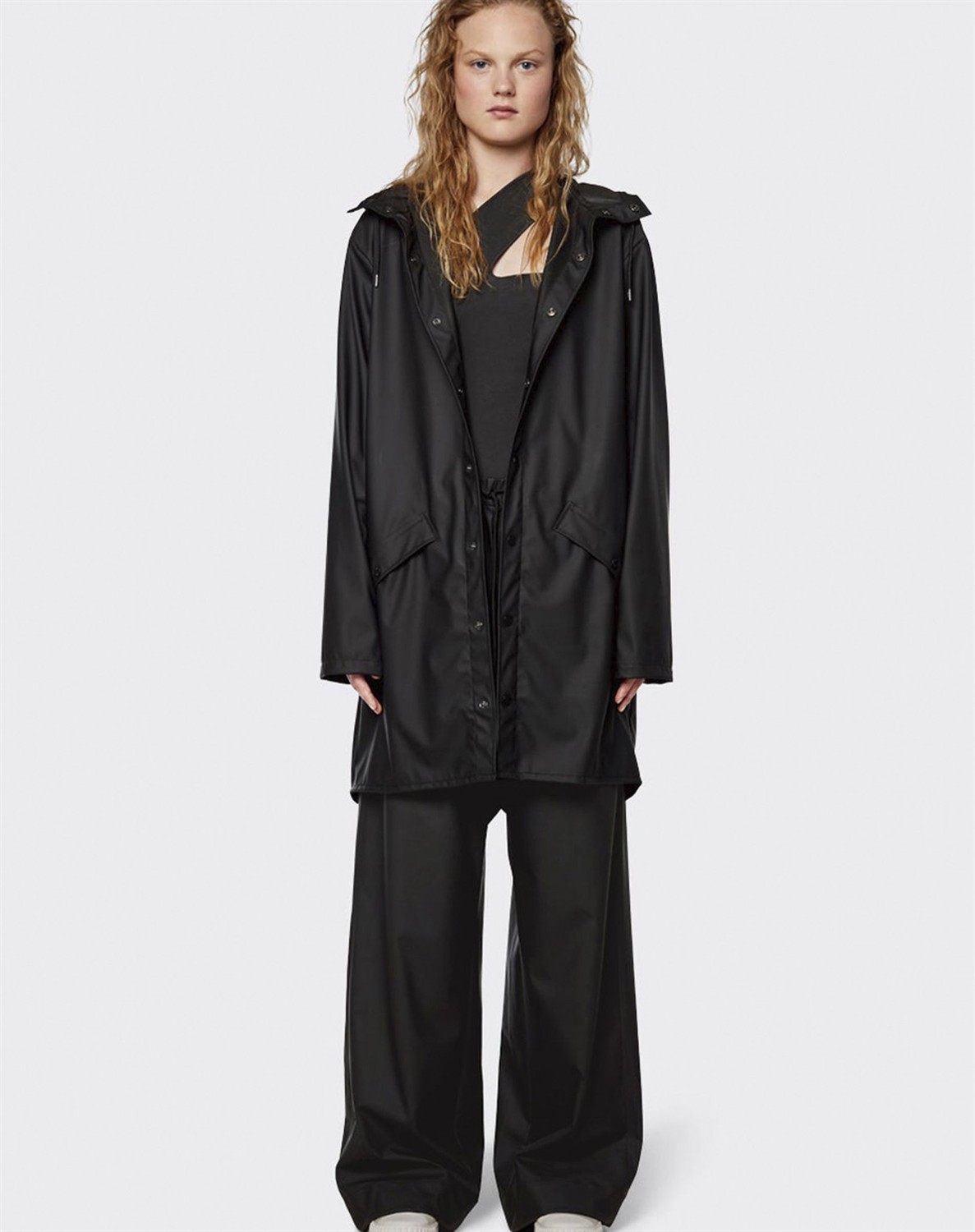 Denne lækre regnjakke er et ikonisk design fra danske Rains. Jakken er fremstillet i et vandtæt materiale, som er super let. Den har et enkelt minimalistisk udtryk med hætte og lommer. Regnjakken er super behagelig at have på og passer til både kvinde og herre. Den skær ved knæet. Tilføj regnbukserne og regnhatten fra Rains til din jakke.