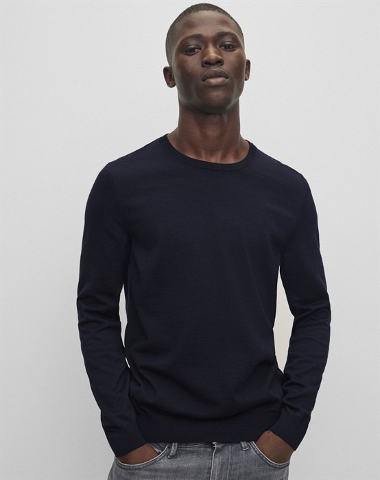 Leno-P Strik - Hugo BossRund halsudskæringRibkanterStørrelsessvarendeSlim fit100% Uld