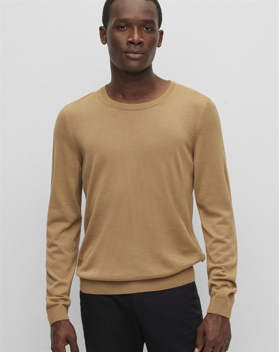 Leno-P Strik - Hugo BossRund halsudskæringRibkanterStørrelsessvarendeSlim fit100% Uld