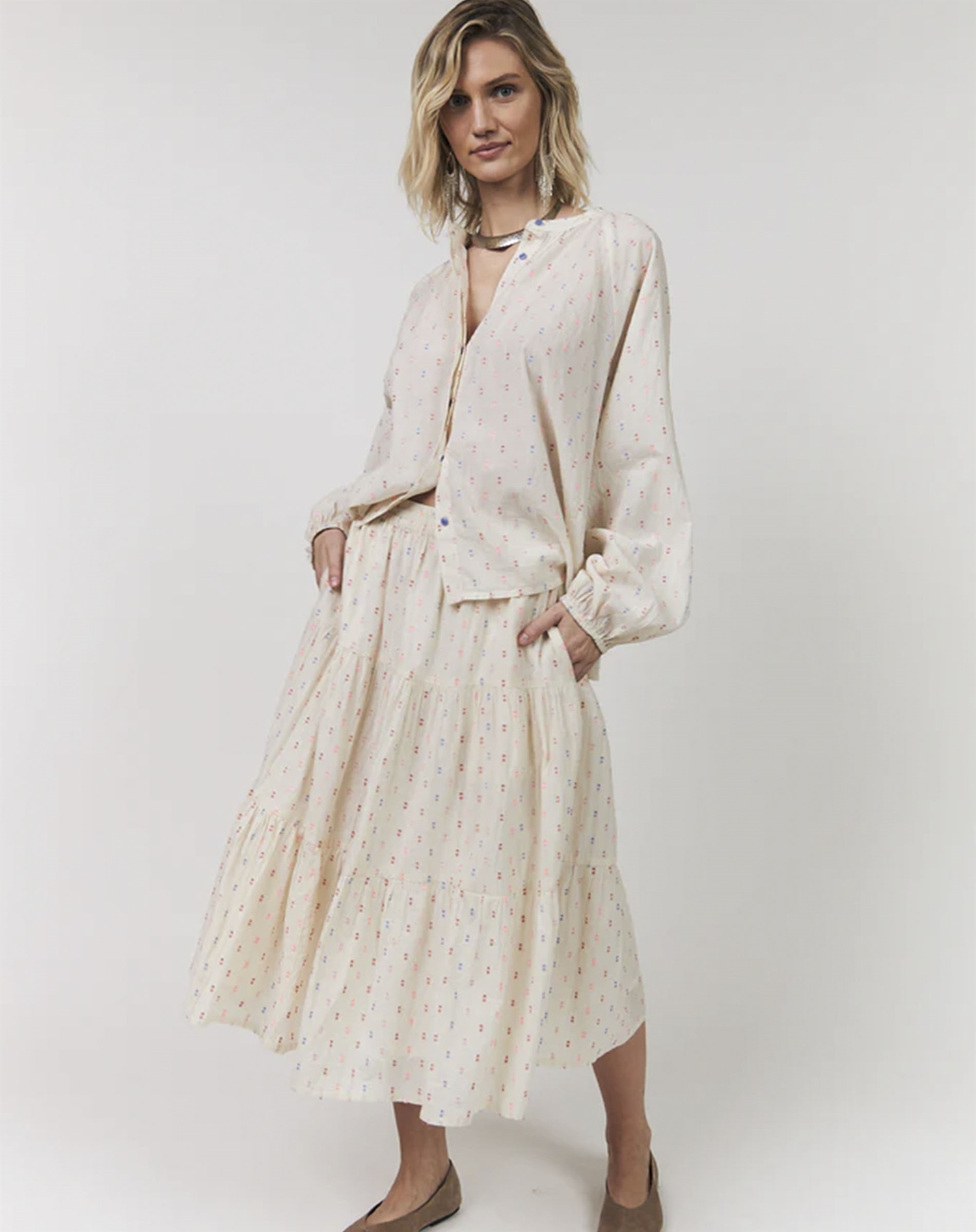 Vil du ramme et udtryk, der både er pænt og afslappet, er Lollys Laundry's HaileyLL Skjorte i creme et oplagt valg. Skjorten har et klassisk snit og en rolig nuance, der passer ind i de fleste garderober. Den er nem at style med både jeans og nederdel, så du kan bruge den til hverdag såvel som til mere formelle lejligheder.