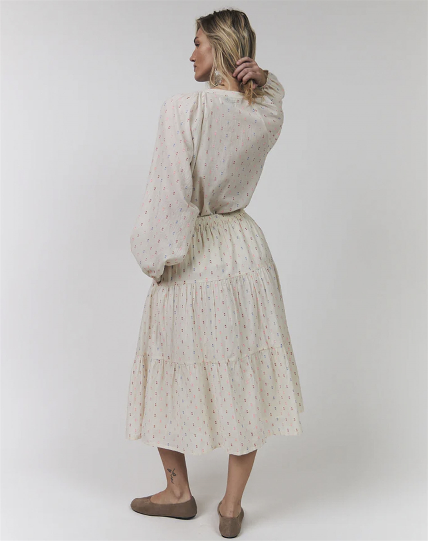 Prøv den med mørke bukser og en let jakke, hvis du vil give dit outfit et mere sofistikeret præg. Når temperaturen falder, fungerer den også rigtig godt med en chunky strik over, så du får et lag-på-lag look, der både er smart og praktisk.