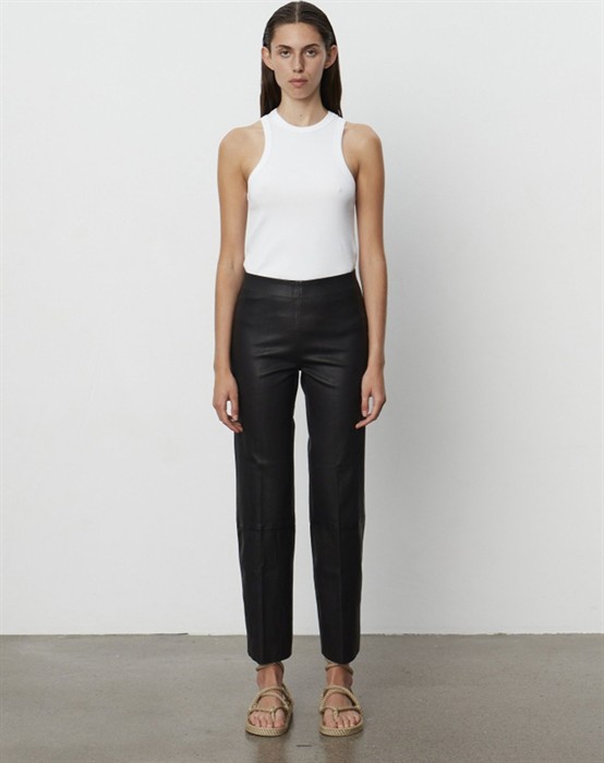 Madisson Lamb Stretch Bukser - DAY Birger et MikkelsenLækre og bløde sorte skindbukser i et strækbart materiale. Bukserne er fra DAY Birger et Mikkelsen og med elastik i livet. De er designet med lige ben, som skær ved anklen og med en høj talje. Skindbukserne er super behagelige og komfortable at have på. Style Madisson Lamb Stretch Bukseren til alt i din garderobe. Super flotte med en lækker strik fra Sibin Linnebjerg og et par klassiske støvler fra Billi Bi. Oplev alle de lækre styles fra DAY Birger et Mikkelsen lige her.