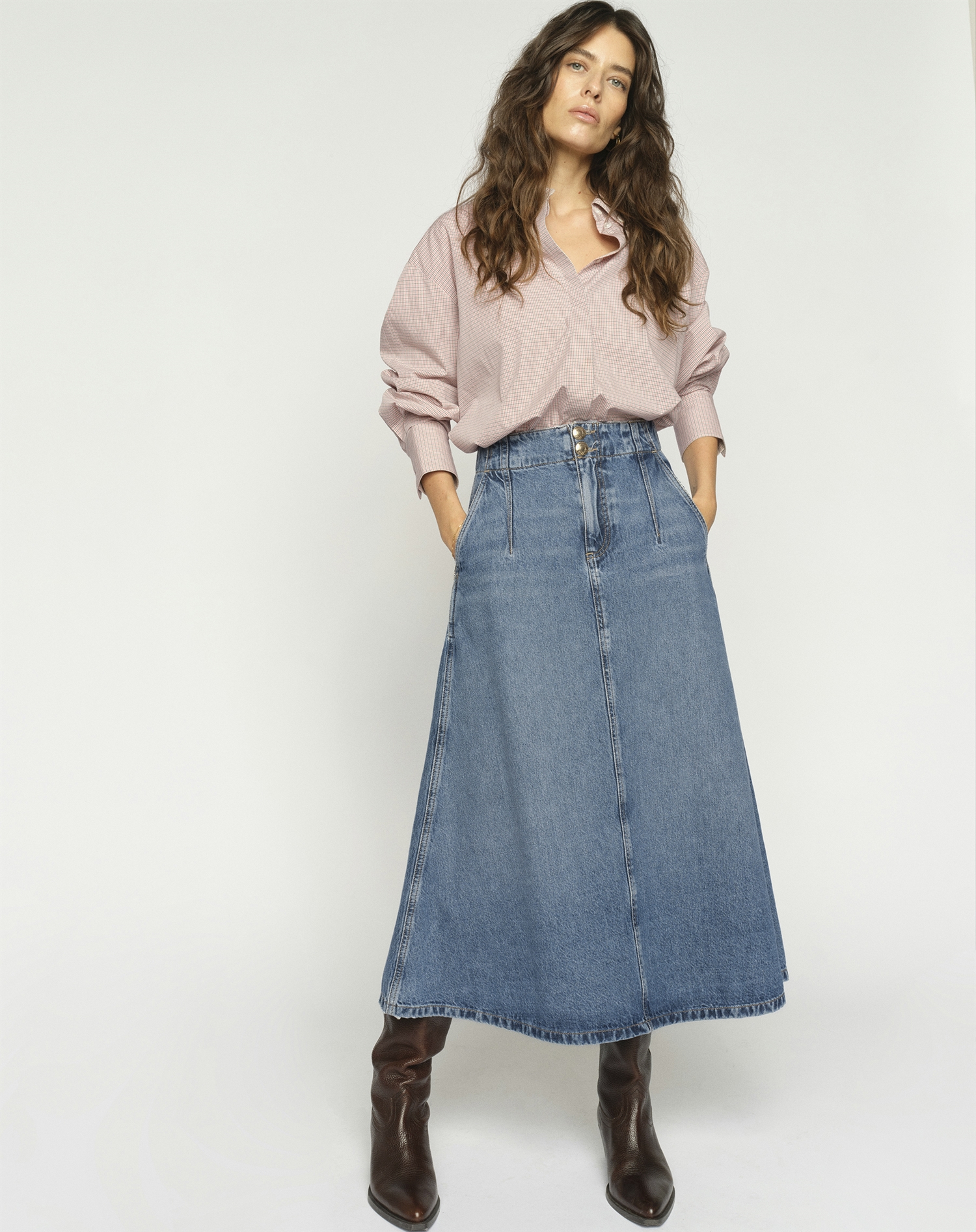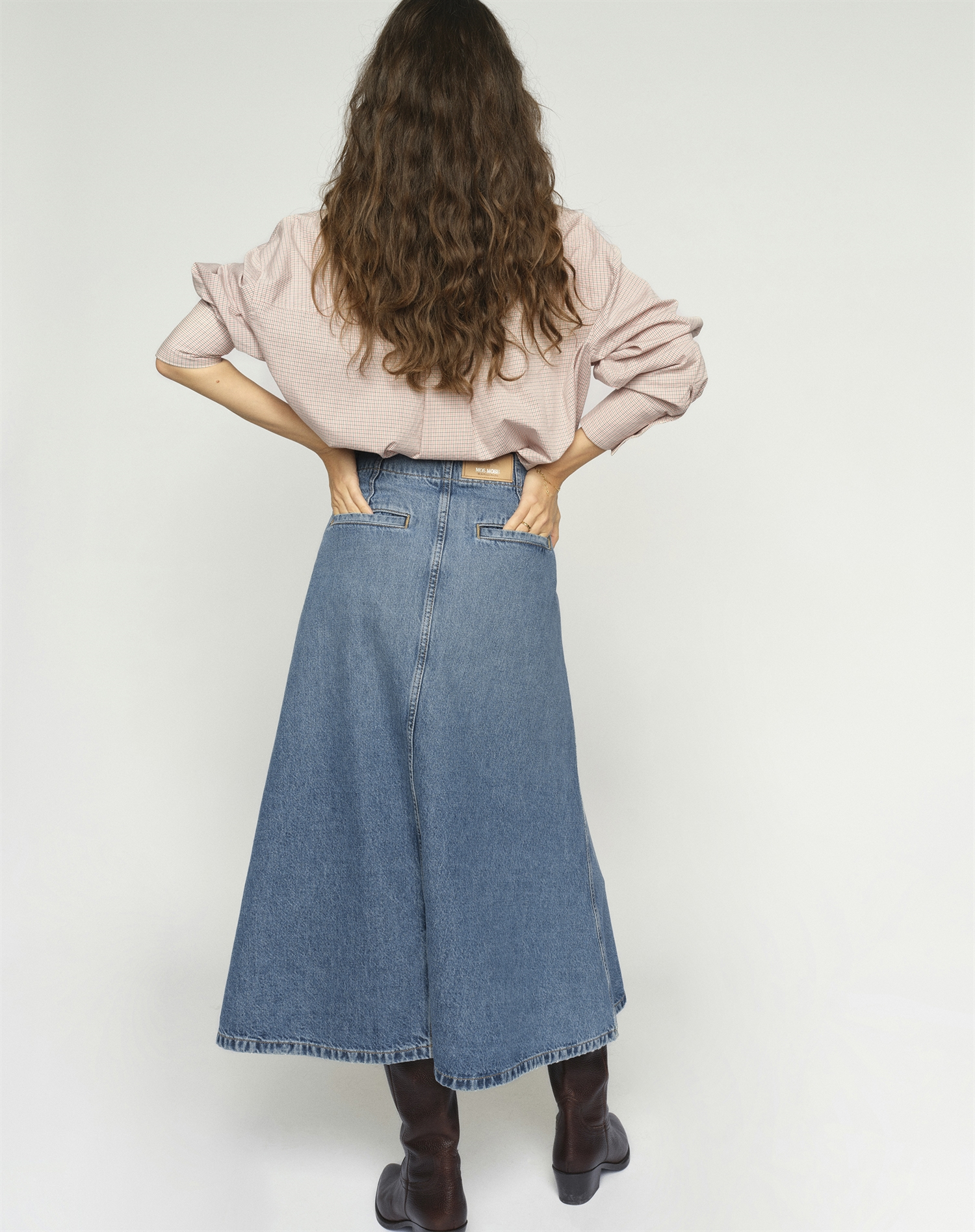 Hvad gør den til en favorit? Først og fremmest er den utrolig anvendelig og kan bruges til både afslappede dage og mere pæne anledninger. Derudover er blå denim en sikker klassiker, som du kan vende tilbage til sæson efter sæson. Til sidst giver mødet mellem et klassisk snit og en moderne kant en nederdel, der både er praktisk og flot at have i rotation.