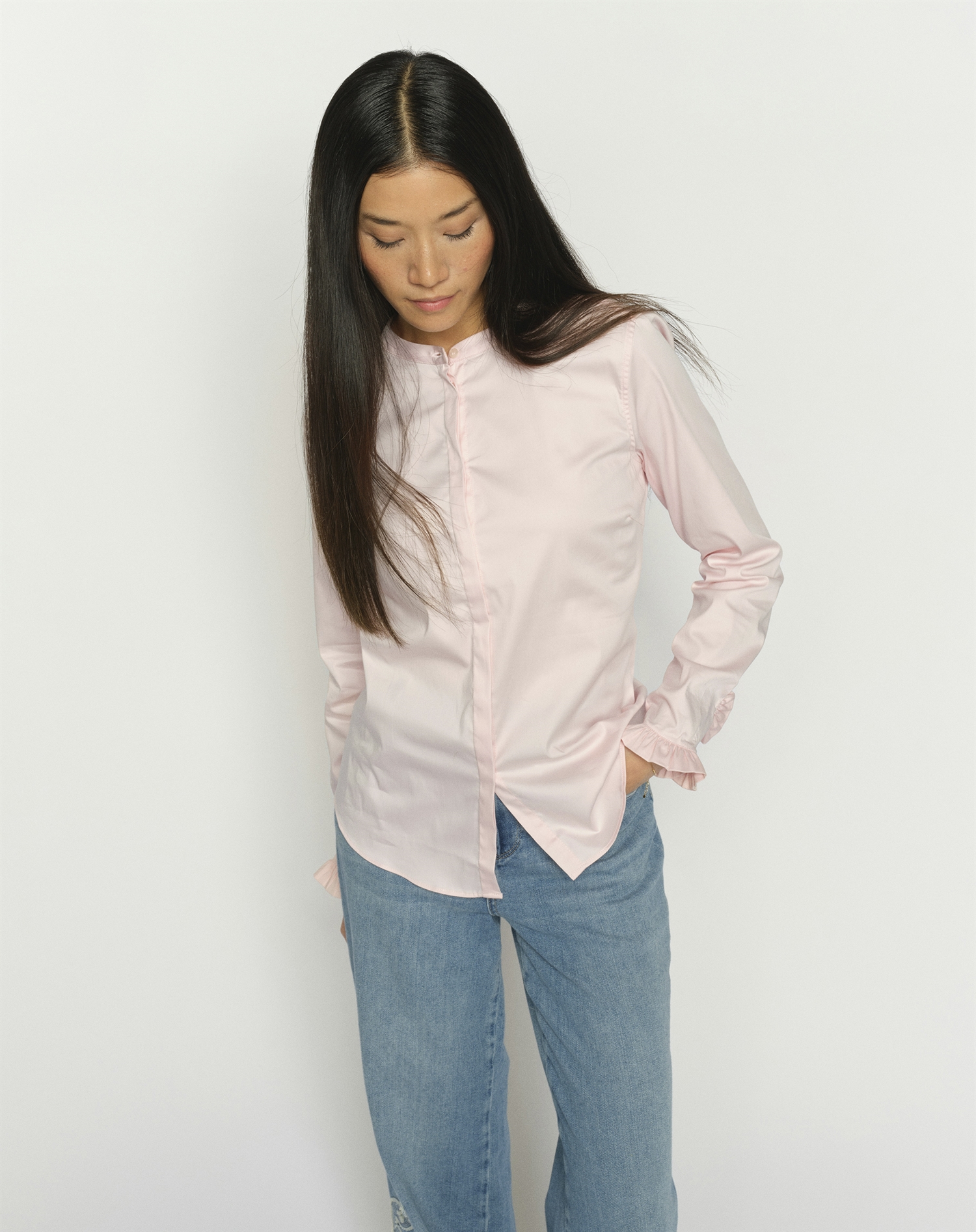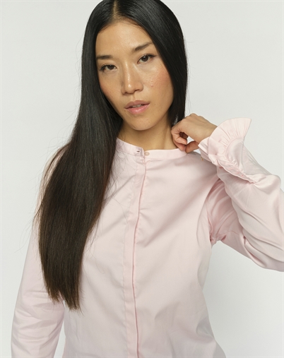 Med sit enkle, men raffinerede design er denne skjorte perfekt til både arbejdsdagens krav og aftenens afslappede sammenkomster. Kombinér den med skræddersyede bukser for et professionelt look på kontoret, eller med jeans for en mere afslappet, men stadig stilfuld weekendstil. Ballet Slipper-farven giver et feminint touch, der let kan matches med forskellige nuancer.