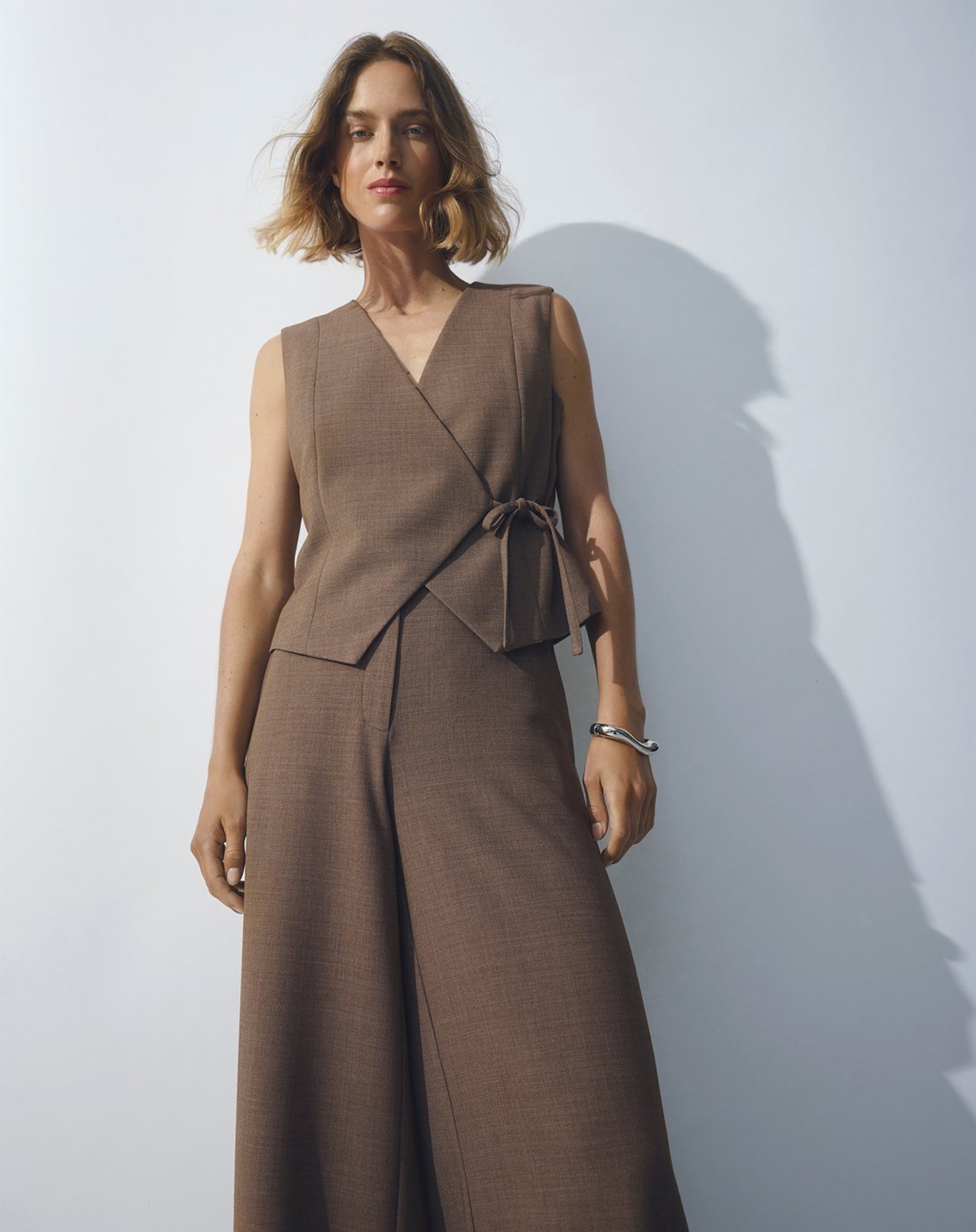 Prøv at bære denne vest over en klassisk hvid skjorte eller en enkel turtleneck for et elegant og tidløst udtryk. Kombinér med jeans og ankelstøvler for et afslappet, men sofistikeret weekend-look. Den er også perfekt over en kjole på kølige dage, hvor den både varmer og pynter.
