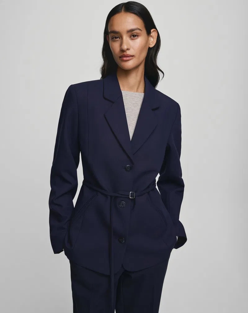❤︎ Enkeltbrystet design med skarpe linjer.