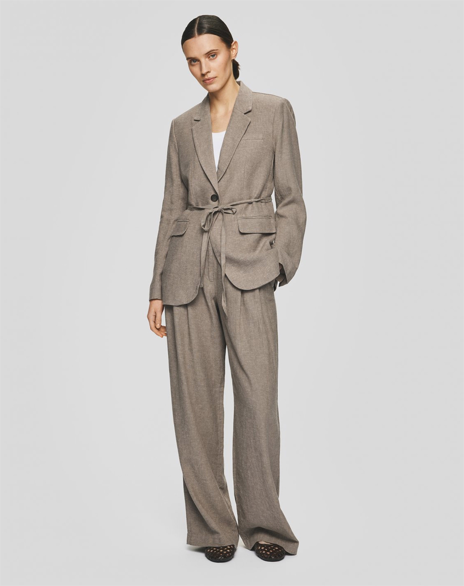 Du får en helt særlig kombination af let elegance og afslappet stil, når du tager MSCH Copenhagen's MSCHViana Ginia Pleat Bukser på i farven Mount Trail Melange. Udtrykket er klassisk og tidløst, men med et nutidigt præg, der gør dem nemme at bruge på tværs af din garderobe.
