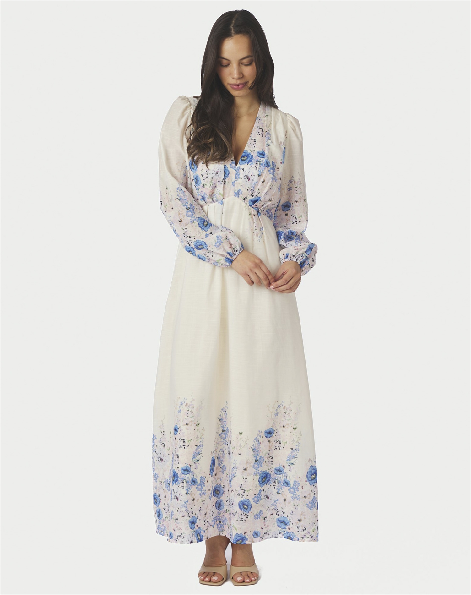 Til en afslappet brunch er den fin med sandaler og en let jakke. Skal du til noget mere formelt, så skift til høje hæle og en elegant clutch, der spiller flot sammen med printet.