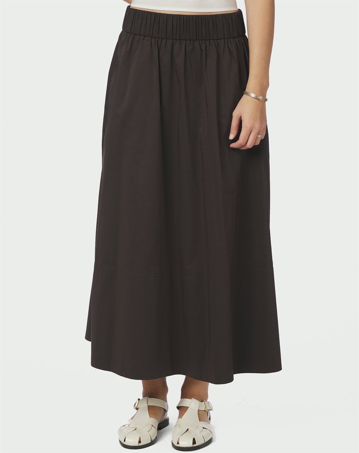 Derfor bliver den hurtigt en favorit: Den chokoladebrune tone føles både nutidig og tidløs, og den lange længde giver et smukt, flydende fald. Poplin-kvaliteten er kendt for at være let og behagelig, så nederdelen er nem at have på hele dagen og samtidig fin nok til særlige anledninger. Netop alsidigheden gør, at den passer ind i mange garderober og kan bruges igen og igen.
