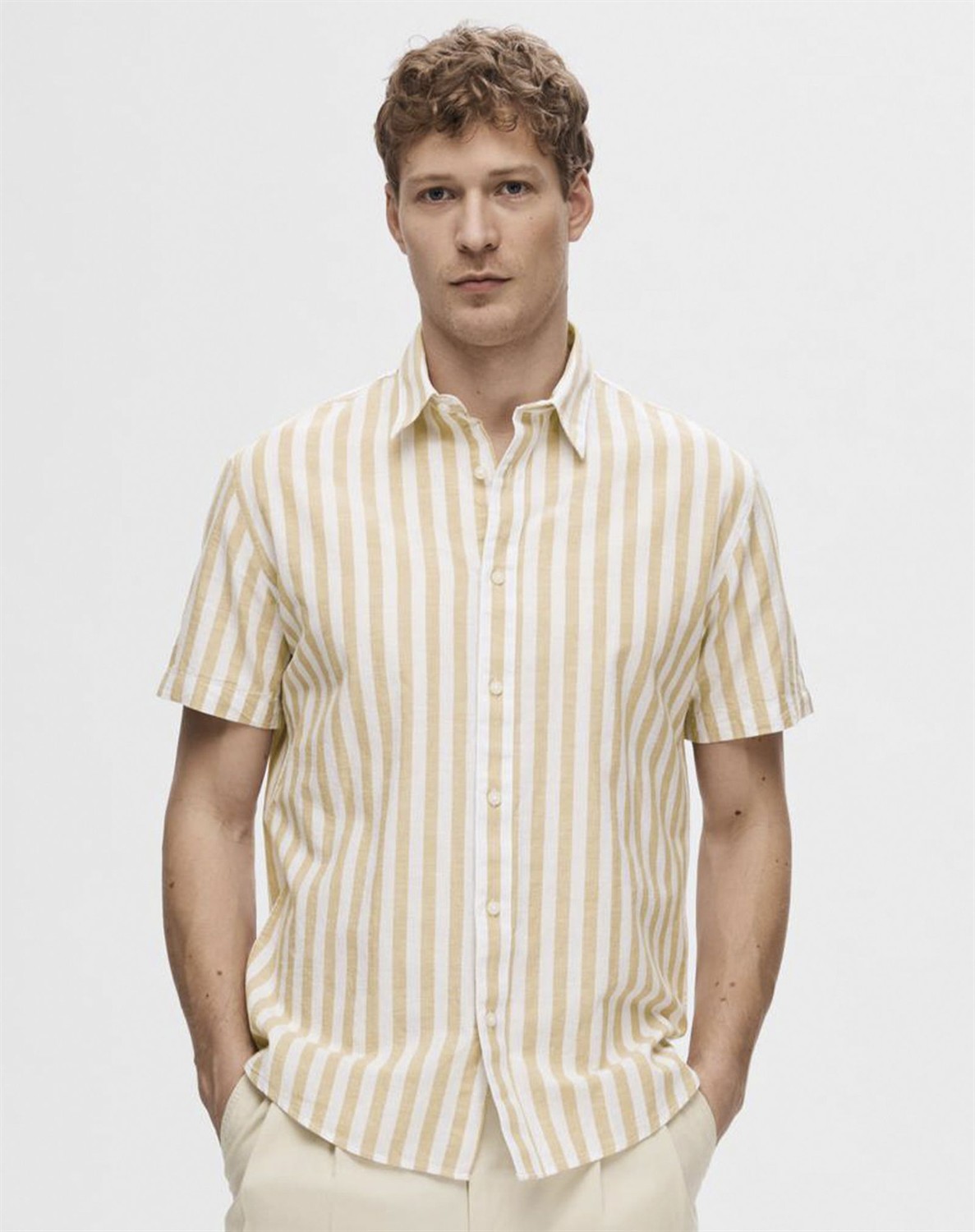 Super lækker skjorte i bomuld og hør fra Selected. Skjorten har en klassisk krave, korte ærmer samt en normal pasform. Den er i dejlig bomuld og hør kvalitet som gør den komfortabel at have på. Den fåes i flere farver. Style New Linen Skjorte til alt - Perfekt til både hverdag og aften, alt efter hvilket look der måtte ønskes.