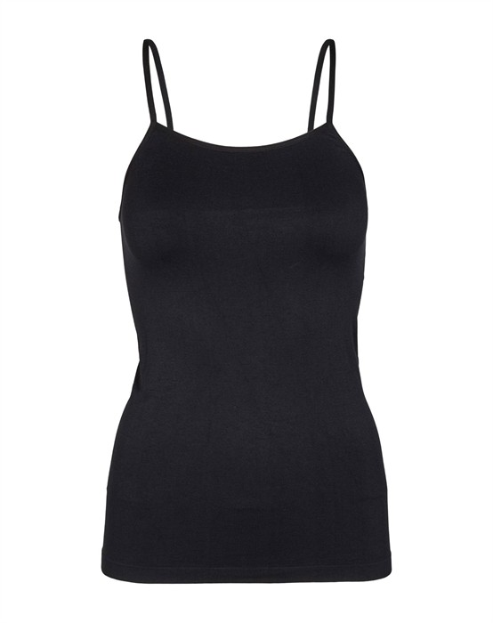 Lækker top i tidsløst design fra LIBERTÉ ESSENTIEL. Toppen har rund hals, tynde regulerbare stropper og en tætsiddende pasform, i et blødt og strækbart materiale, som gør den komfortabel at have på. Et absolut must-have i enhver kvindes basisgarderobe. Style Ninna Top til alt - Perfekt top under syninger i siderne, som gør den ideel til at have under tætsiddende overdele.