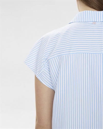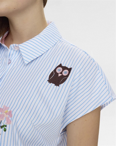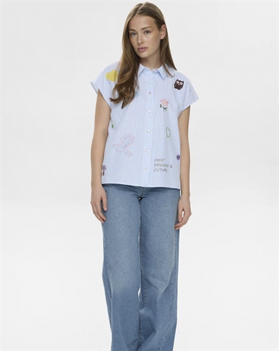 Derfor bliver den hurtigt en favorit: Den er nem at bruge på tværs af anledninger, så du kan gå direkte fra arbejde til café. Den friske blå farve løfter dit outfit og klæder mange hudtoner. Og broderidetaljerne giver det lille ekstra, der gør skjorten mere særlig end en klassisk basisstyle.
