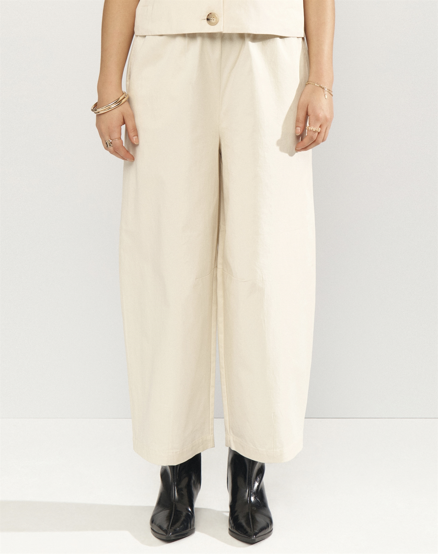 Til hverdag kan du sætte dem sammen med en blød strik og sneakers for et afslappet outfit. Skal det være mere elegant, fungerer de perfekt med en klassisk skjorte og et par fine støvletter. I de varmere måneder er de også oplagte med sandaler og en let top. Det enkle snit gør, at de holder sæson efter sæson, og hurtigt bliver et par, du vender tilbage til.