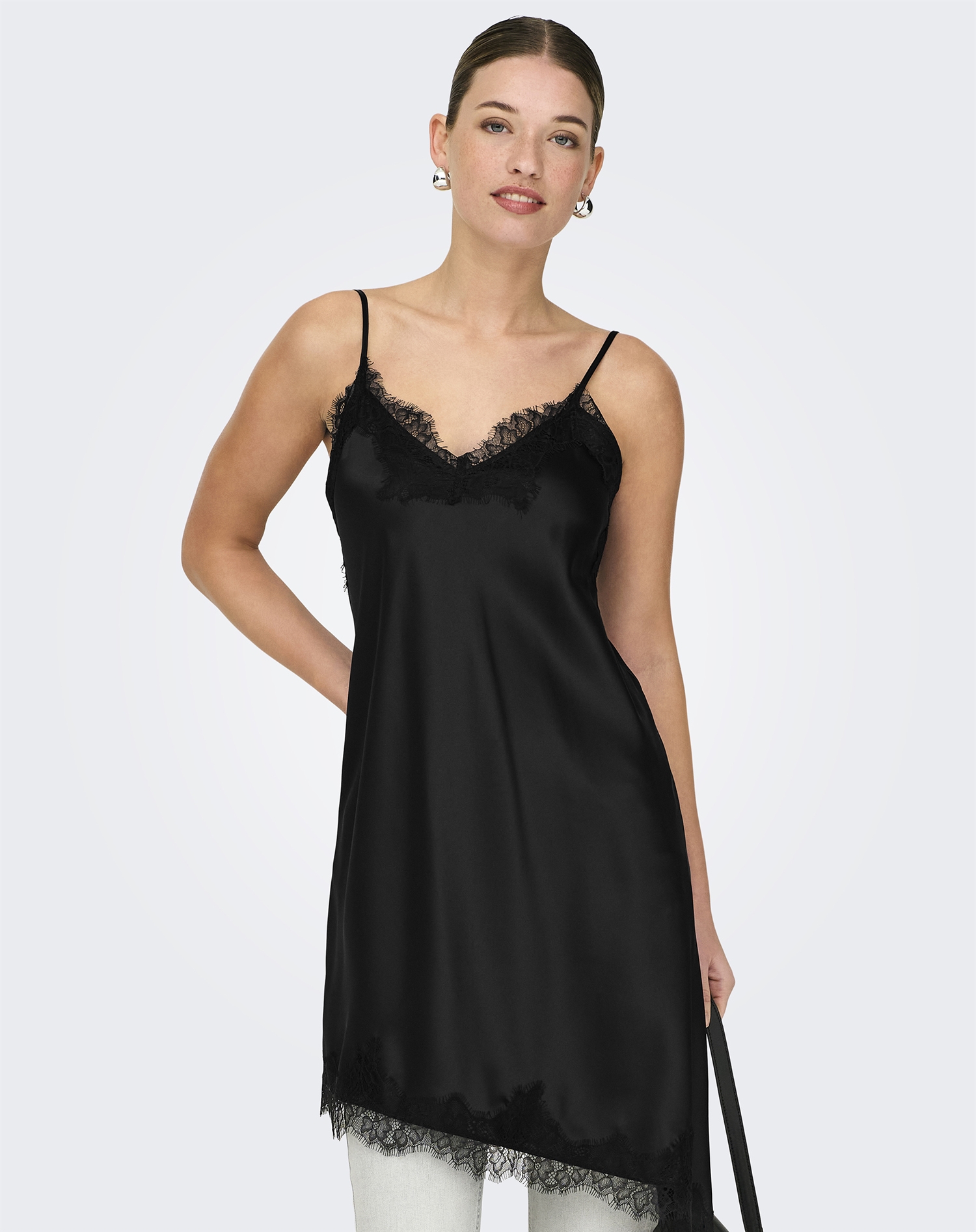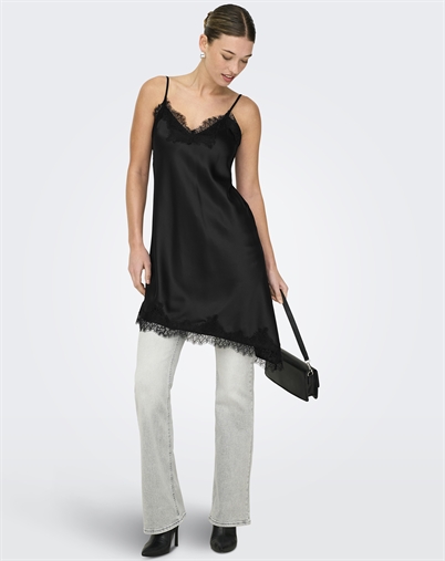 Only - ONLBella Strap Satin Lace Kjole - Black