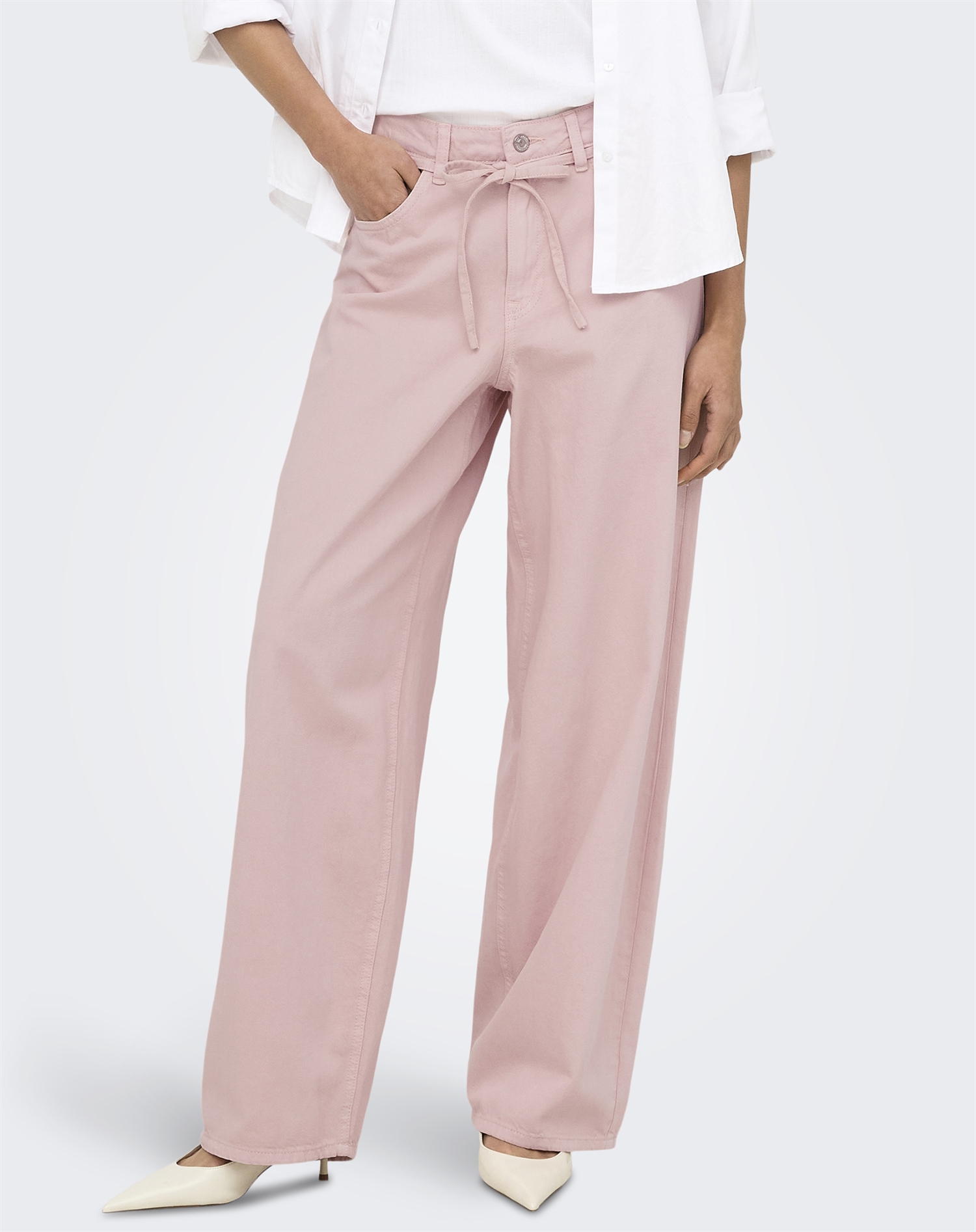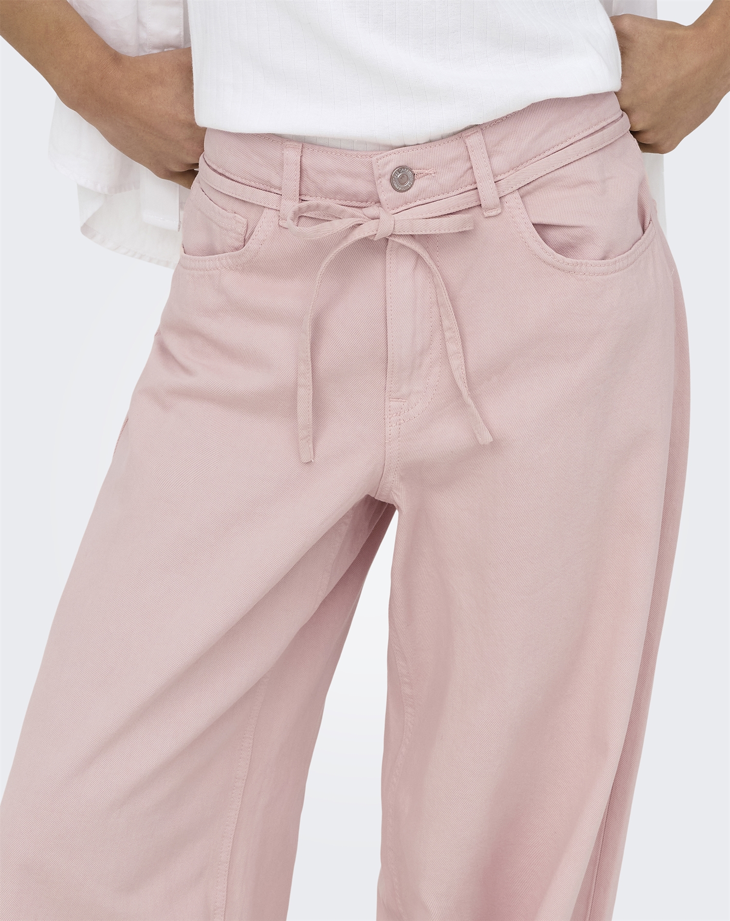 Se dem som et sikkert go-to par, der fungerer både til hverdage og mere festlige planer. Den støvede rosatone er nem at style med alt fra rolige, neutrale farver til stærkere kontraster. Brug dem med en hvid T-shirt for et let og casual look, eller vælg en sort silketop, når du skal ud om aftenen. Det medfølgende bælte er en lækker detalje, som både fuldender udtrykket og hjælper pasformen på plads.