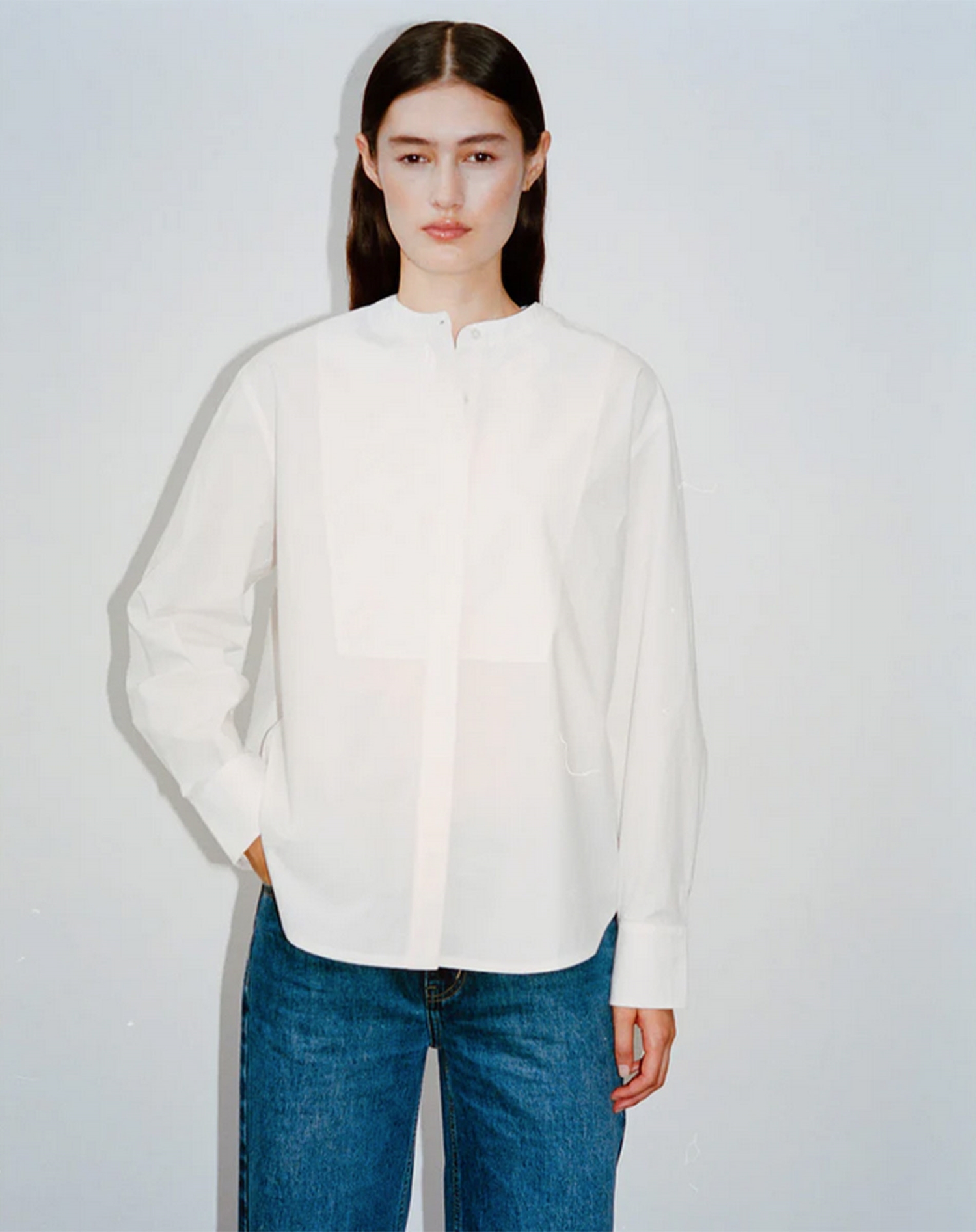 Rabens Saloner - Sunny Crisp Cotton Bib Front Skjorte - White