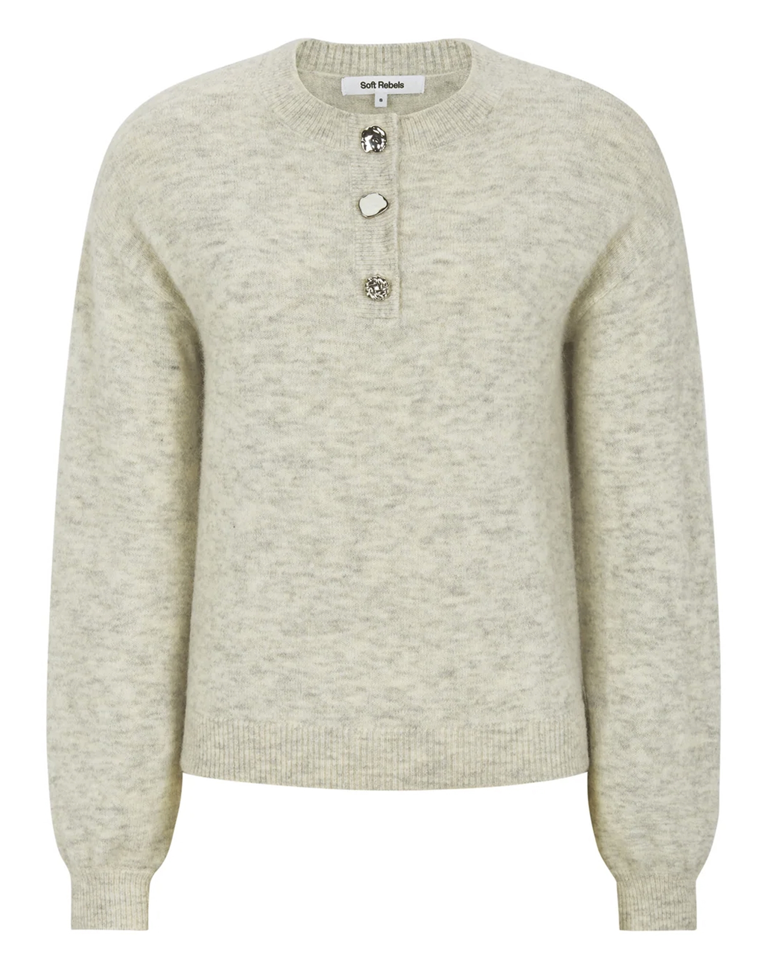 Denne strik fra Soft Rebels tilbyder både stil og komfort. Det fine melange-look og den bløde kvalitet sikrer, at SRAllison Jewel bliver en favorit i garderoben. Style den med dine yndlingsjeans eller en elegant nederdel for et gennemført look.