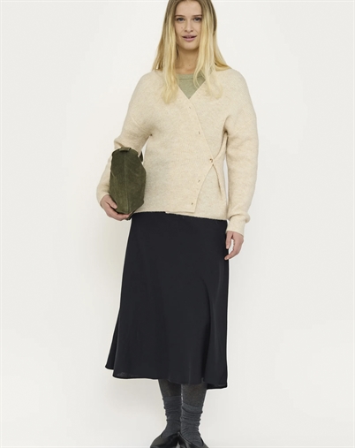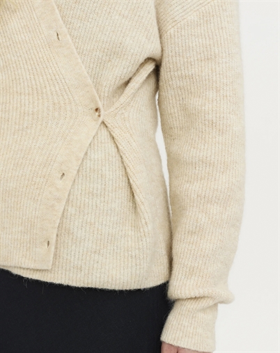 Hvorfor vil du elske denne cardigan? For det første giver dens neutrale farve en tidløs charme, der sjældent går af mode. Derudover er dens strikkede tekstur ofte forbundet med en behagelig varme, hvilket gør den til et praktisk valg i overgangsperioderne. Den er også designet med en pasform, der både er afslappet og stilfuld, hvilket gør den til en favorit i enhver garderobe.