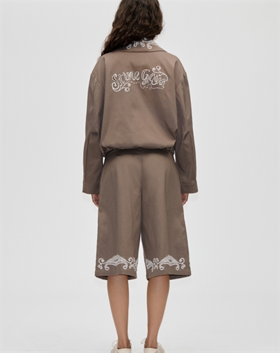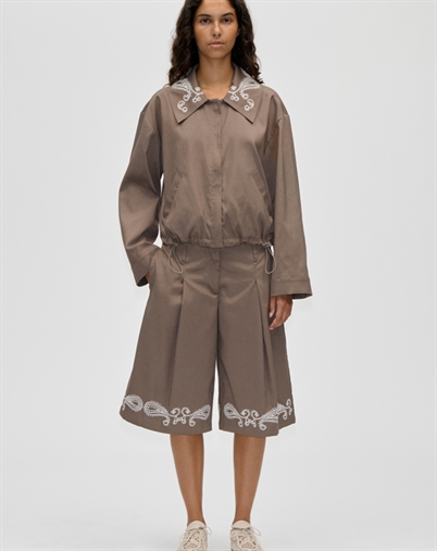 Stine Goya Blouson Eyelet Bomber Jakke fanger opmærksomheden med det samme og gør det tydeligt, at den ikke er som alle andre. "Cherries On A Paisley" er mere end en titel - det er en hel følelse, hvor leg og elegance mødes. Det fine print balancerer det skæve og det raffinerede, så udtrykket får et kunstnerisk præg.