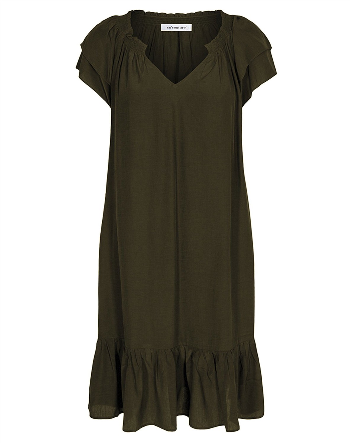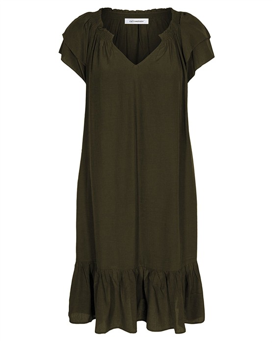 Sunrise Cropped Kjole - Co' CoutureDenne skønne Sunrise kjole fra Co’Couture er tilbage i nye skønne farver, og selvfølgelig også i dem vi kender. Kjolen har fine feminine detaljer med flæseærmer, en bred flæsekant nederst samt elastik, der rynker i halsen. I siderne har kjolen skjulte lommer. Kjolen falder tungt og elegant, og så er den skåret lige under knæet. Med Sunrise Cropped Kjole får du den helt rigtig sommerkjole. Du kan style den afslappet/sporty med et par sneakers fra ARKK Copenhagen. Eller super feminint med et par sandaler fra Billi Bi.