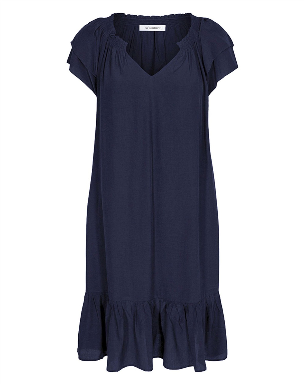 Sunrise Cropped Kjole - Co' CoutureDenne skønne Sunrise kjole fra Co’Couture er tilbage i nye skønne farver, og selvfølgelig også i dem vi kender. Kjolen har fine feminine detaljer med flæseærmer, en bred flæsekant nederst samt elastik, der rynker i halsen. I siderne har kjolen skjulte lommer. Kjolen falder tungt og elegant, og så er den skåret lige under knæet. Med Sunrise Cropped Kjole får du den helt rigtig sommerkjole. Du kan style den afslappet/sporty med et par sneakers fra ARKK Copenhagen. Eller super feminint med et par sandaler fra Billi Bi.