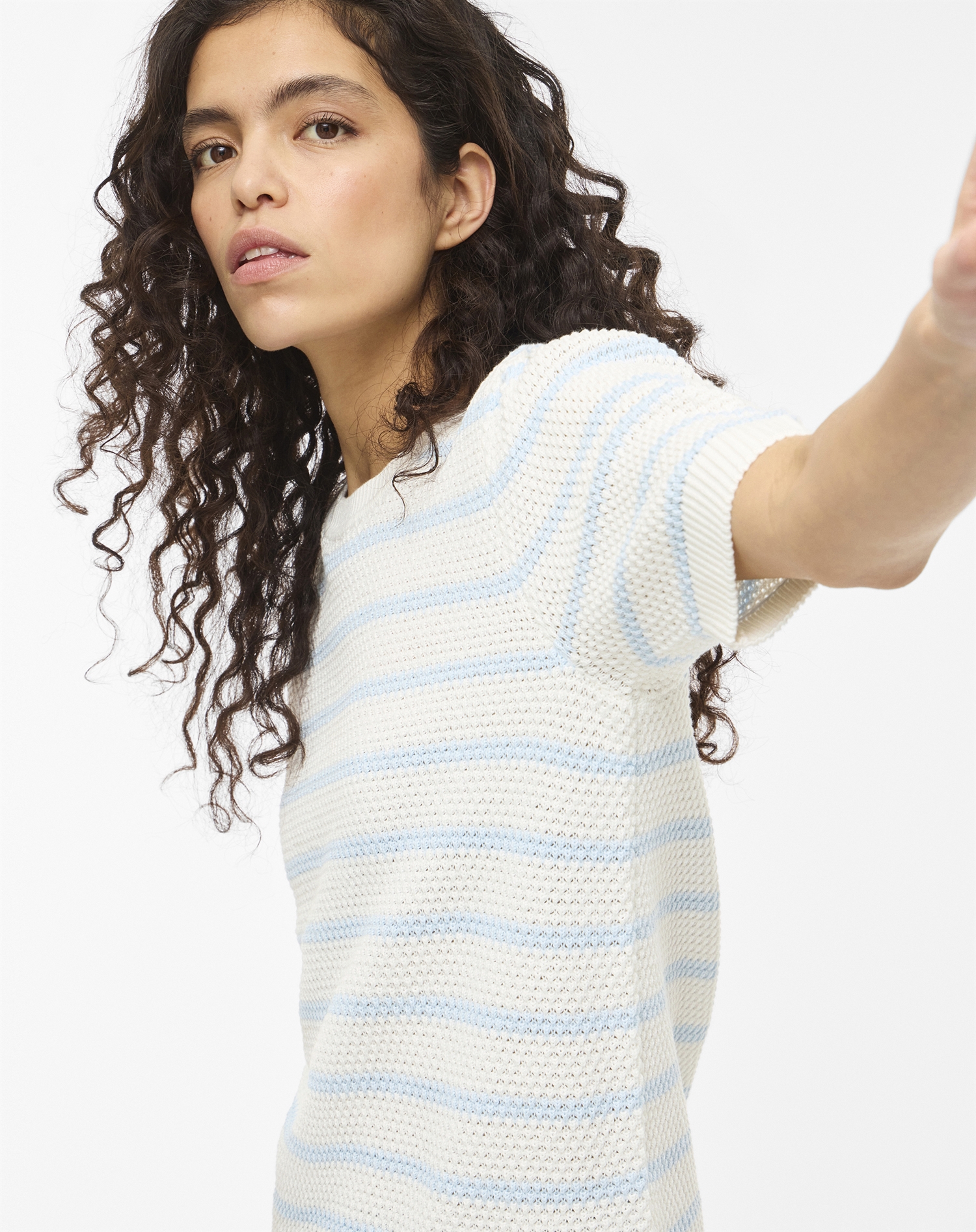 Lyseblå / Strik / Kvinde / 100% Økologisk Bomuld / Hvid